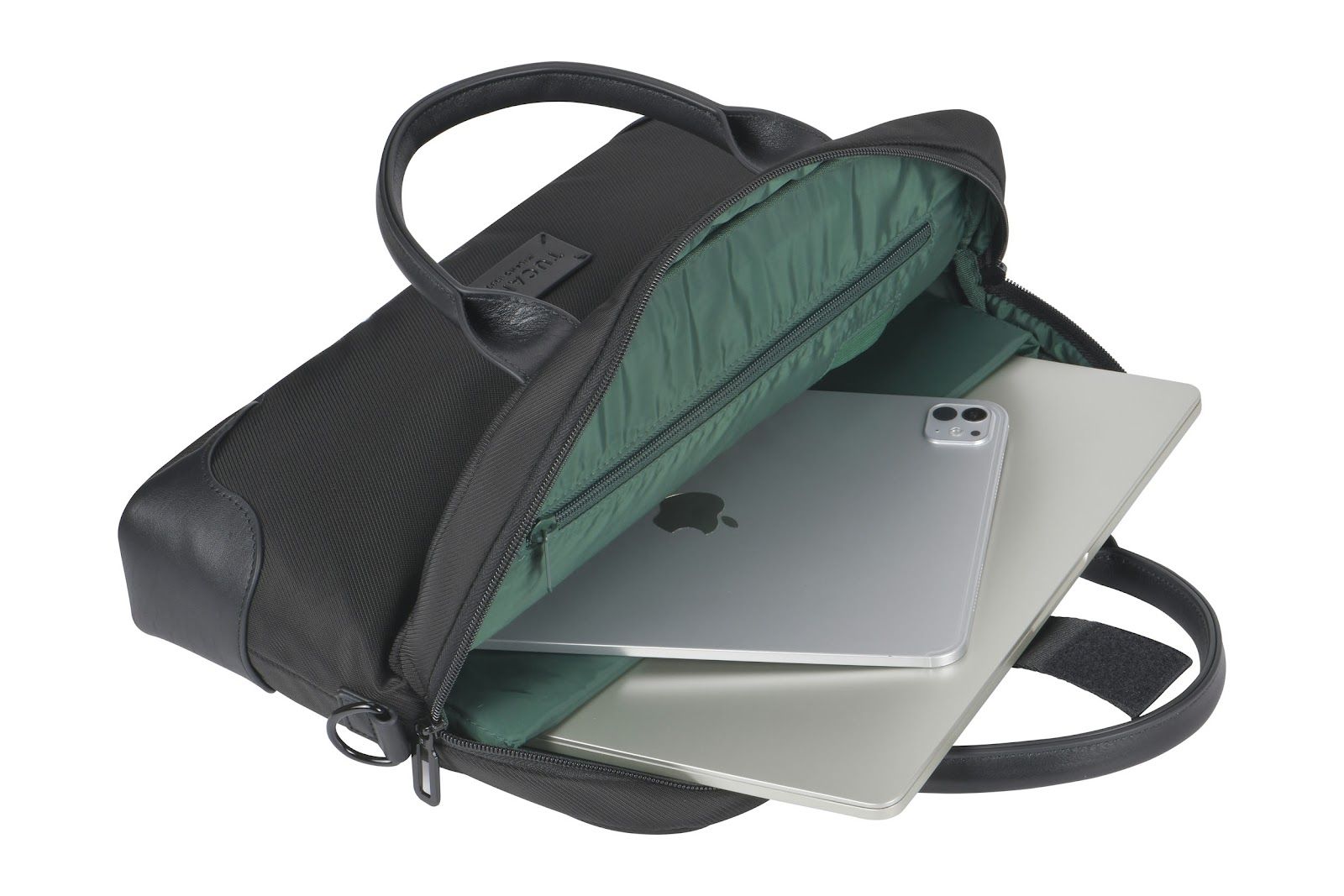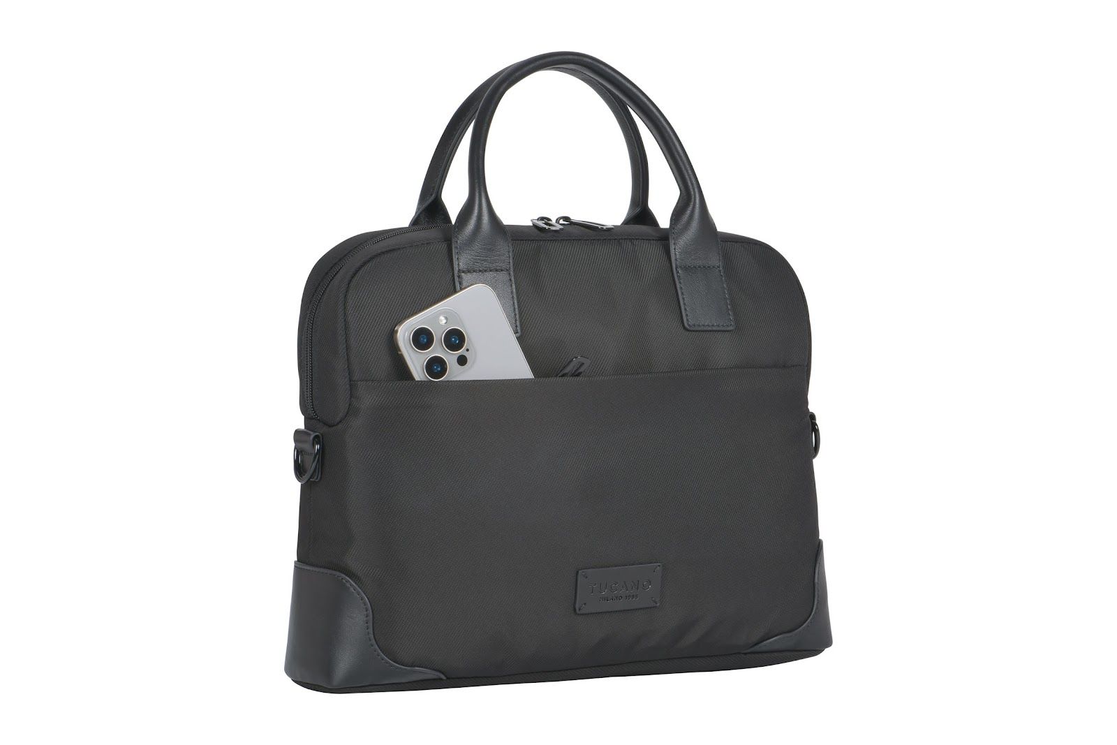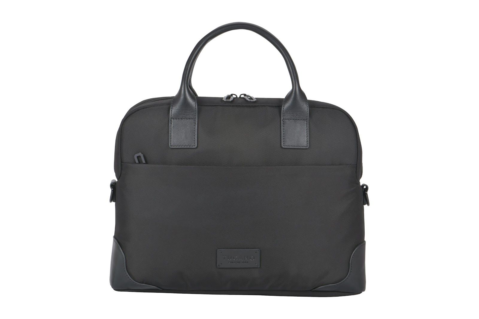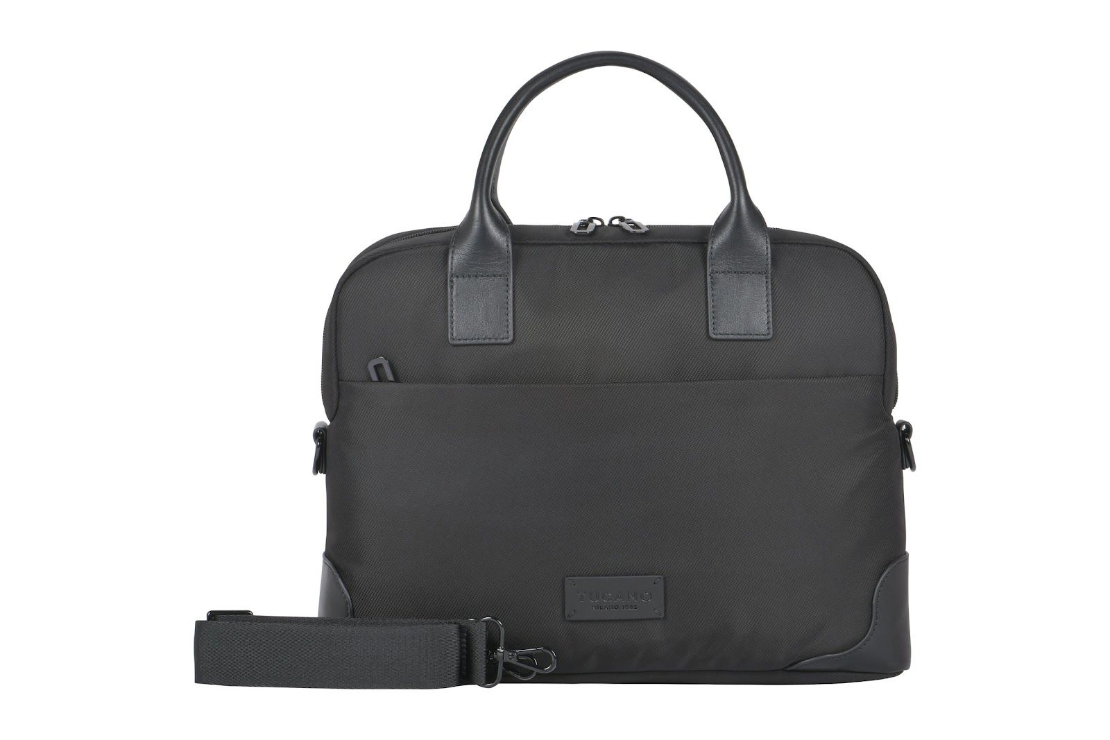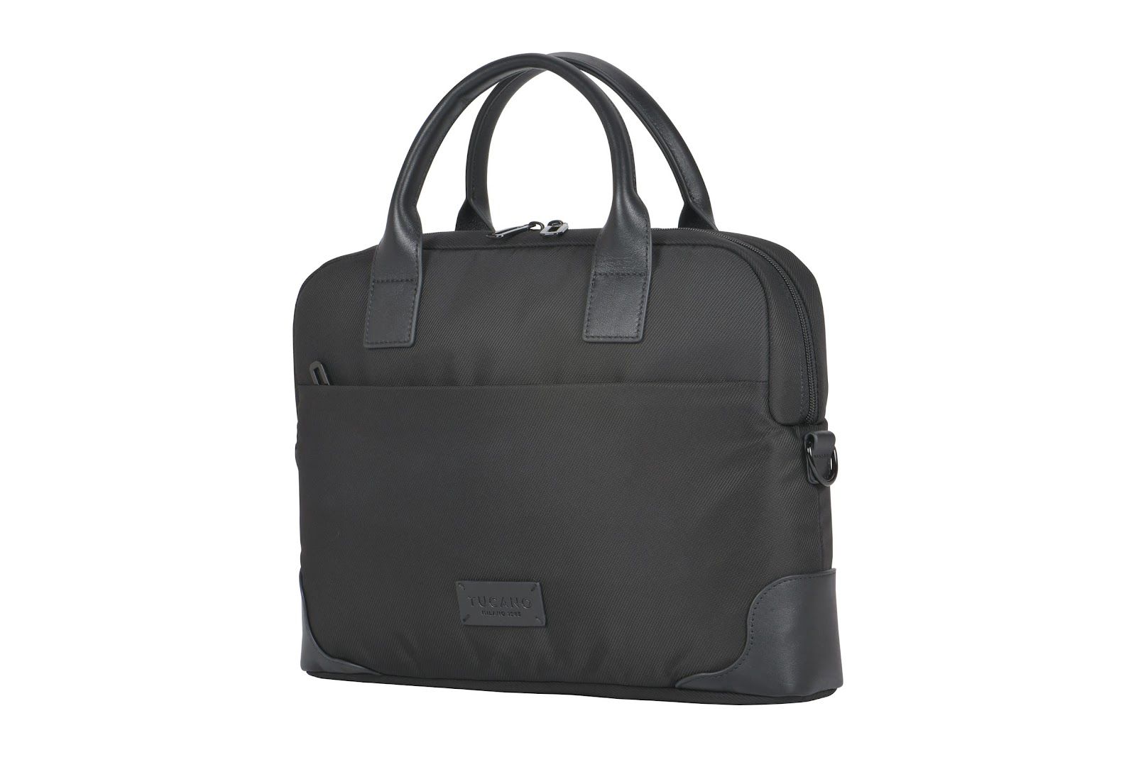 Сумка Tucano Fine 13"/14" поєднує елегантність і функціональність у щоденному використанні. Виготовлена з високотехнологічної тканини з переробленого пластику та оздоблена шкіряними вставками. Має два великі зовнішні відділення й подвійний внутрішній простір для ноутбука, документів і аксесуарів. М’яке відділення захищає лептоп від пошкоджень. Знімний плечовий ремінь забезпечує комфорт під час перенесення.