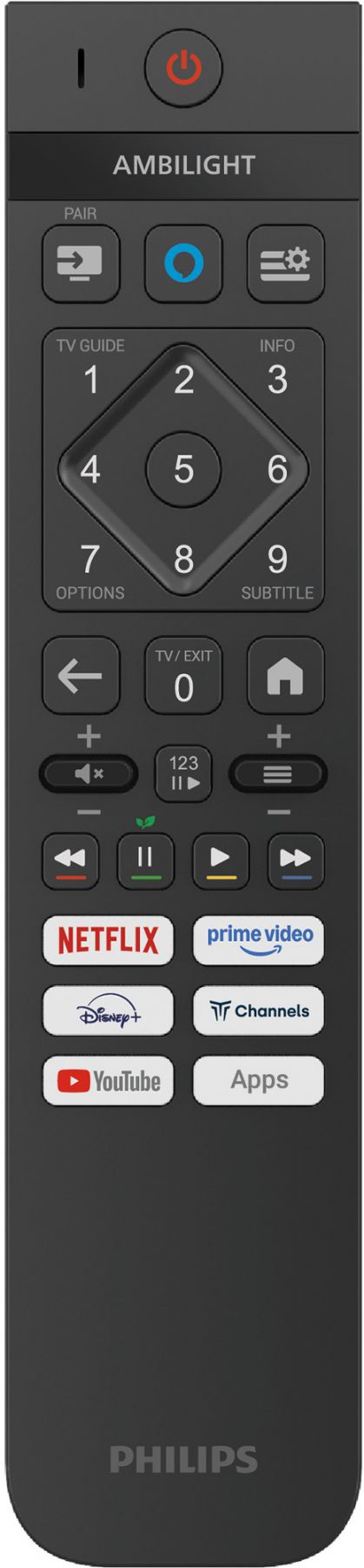 Особливості:Таймер вимкнення, Підтримка HLG, HDR10+, APPLE AIRPLAY, Micro Dimming Pro, ALLM (режим автоматичної низької затримки), екорежим, Підсвітка Ambilight, Вимикання зображення (для радіо), Сенсор світла