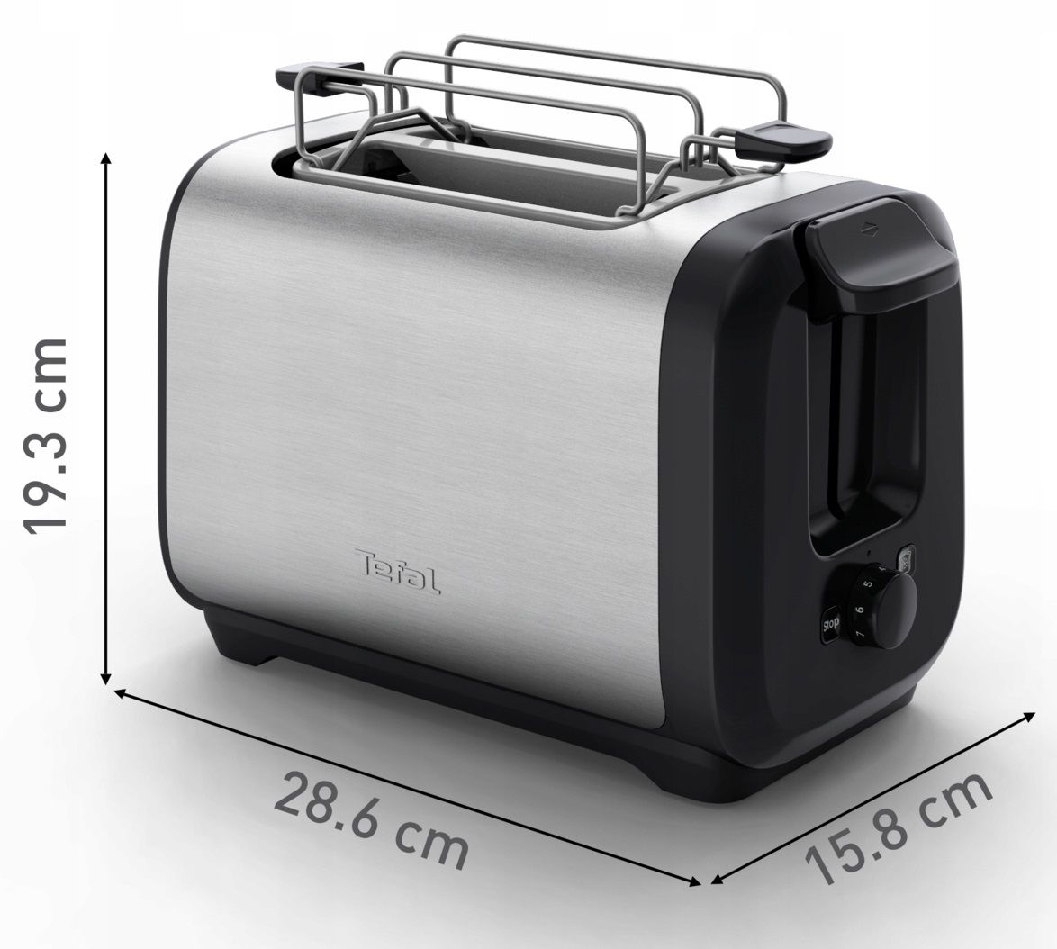 Тостер Tefal Subito 1100Вт, розморожування, щипці, нерж. сталь, чорний