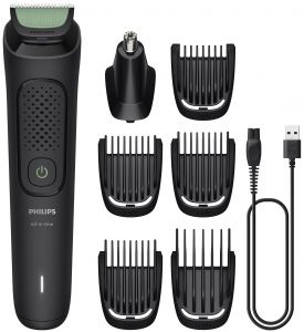 Тример Philips All-in-One Trimmer 3000 Series, для обличчя, голови, носа, акум., насадок-7, сталь, чорний