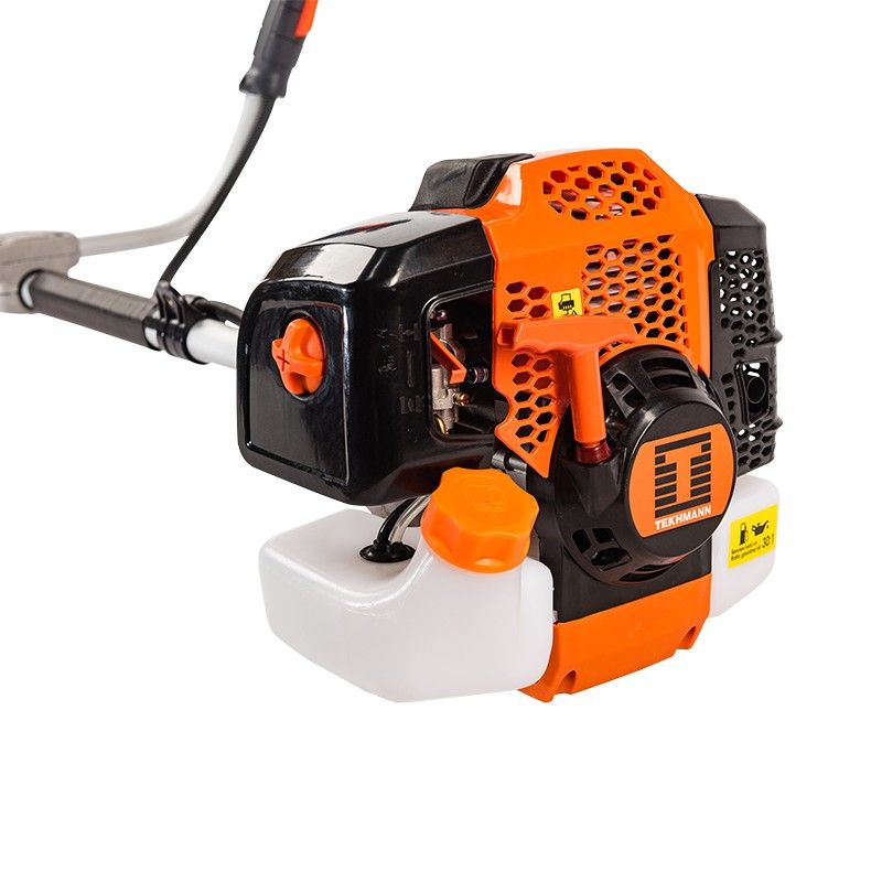 Бензиновий тример Tekhmann BCG-2215 оснащений 2-тактним двигуном 52 см³ (3.1 к.с.), швидкість – до 8500 об/хв. Ширина косіння – 48 см ліскою, 25.5 см ножем. Має ручний стартер, електронне запалювання, бак на 1.2 л, зручне керування. Вага – 8.1 кг.