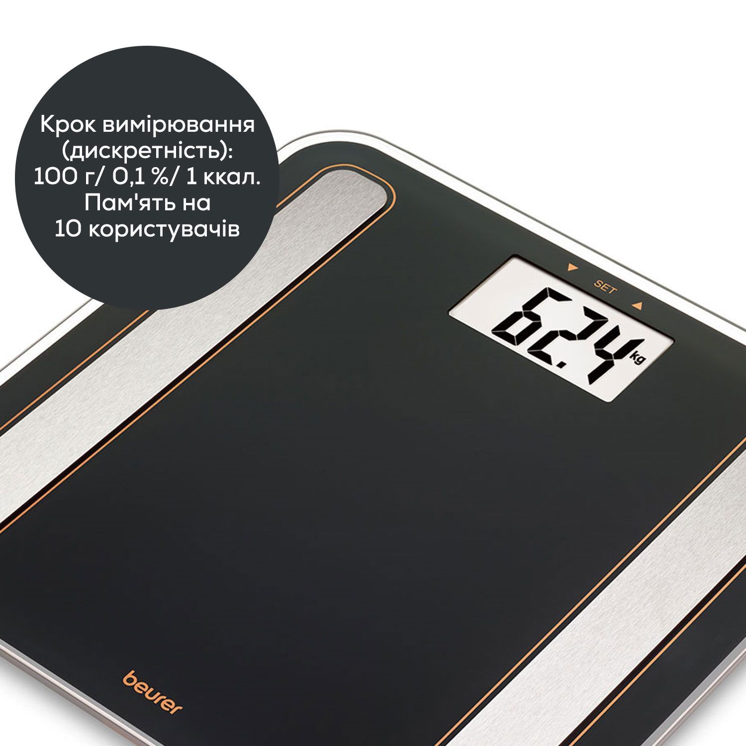 Ваги Beurer підлогові діагностичні, 180кг, підсвіч., дисплея, 1хCR2032, скло,чорний