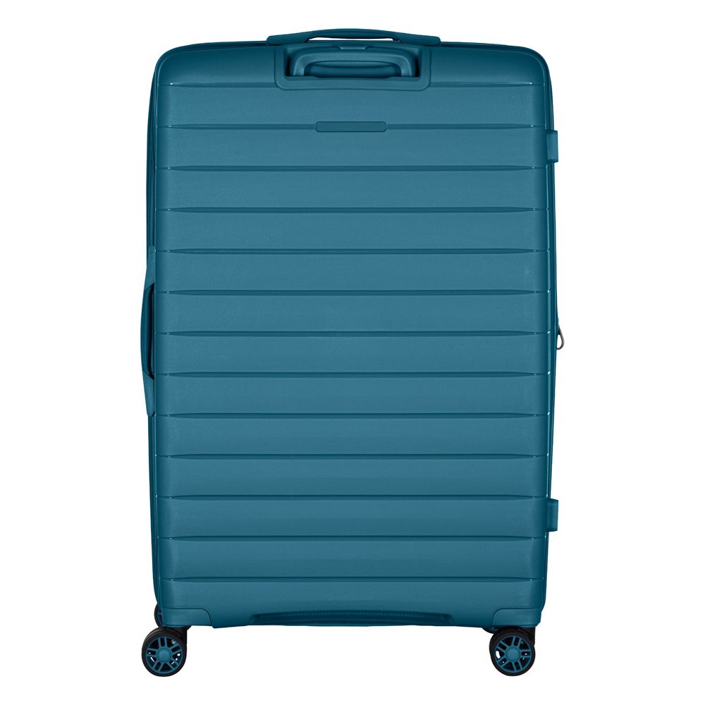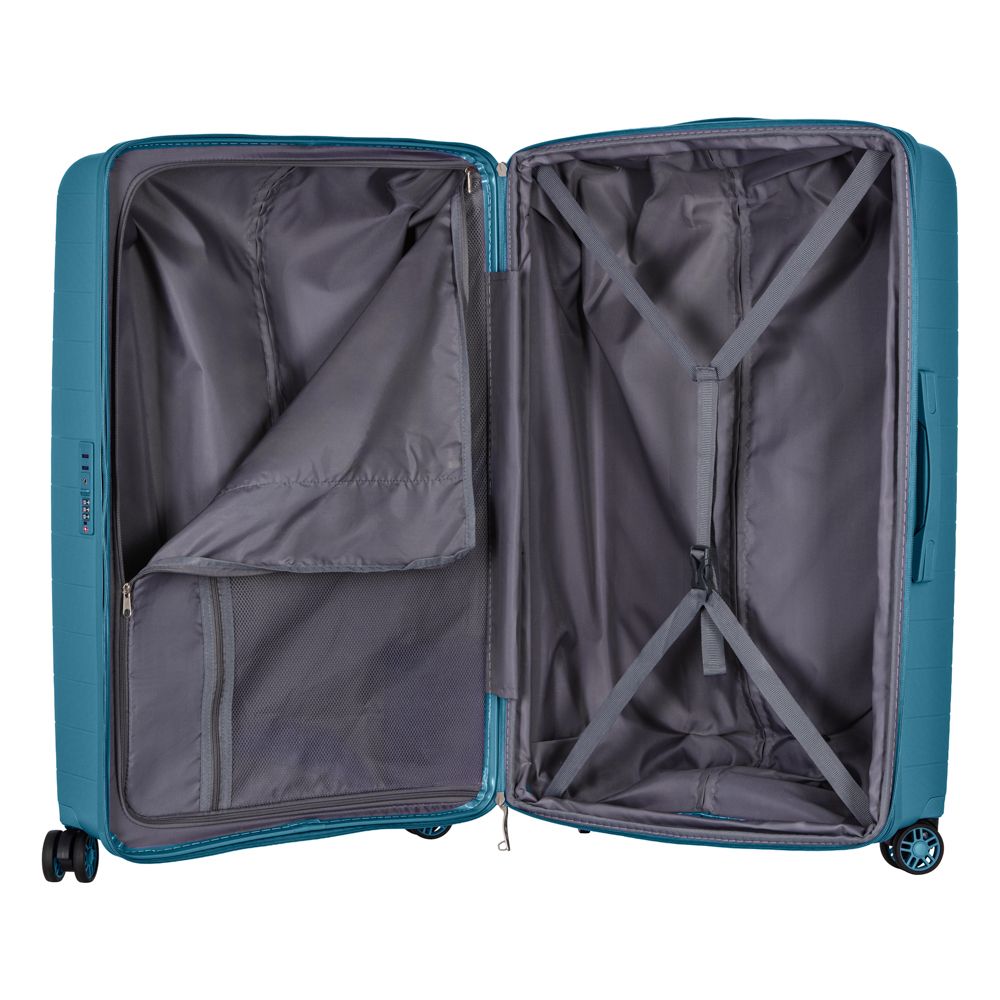 Особливості:можливість розширення (збільшення об'єму), телескопічна висувна ручка, подвійні колеса, передбачено розділювачі та регульовані пакувальні паски всередині