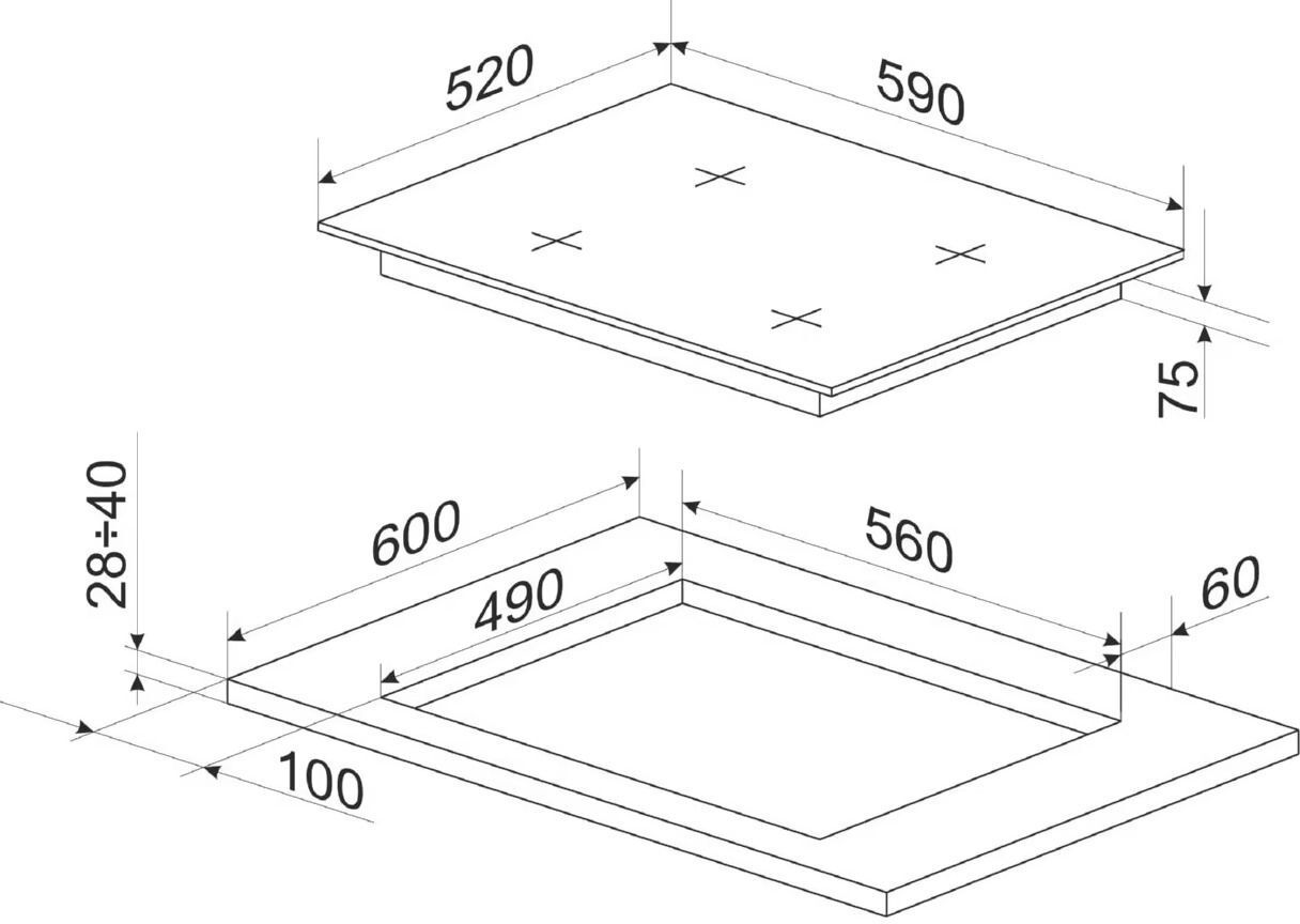Розміри для вбудовування:50.9 х 560 х 490, 55 x 560 x 490