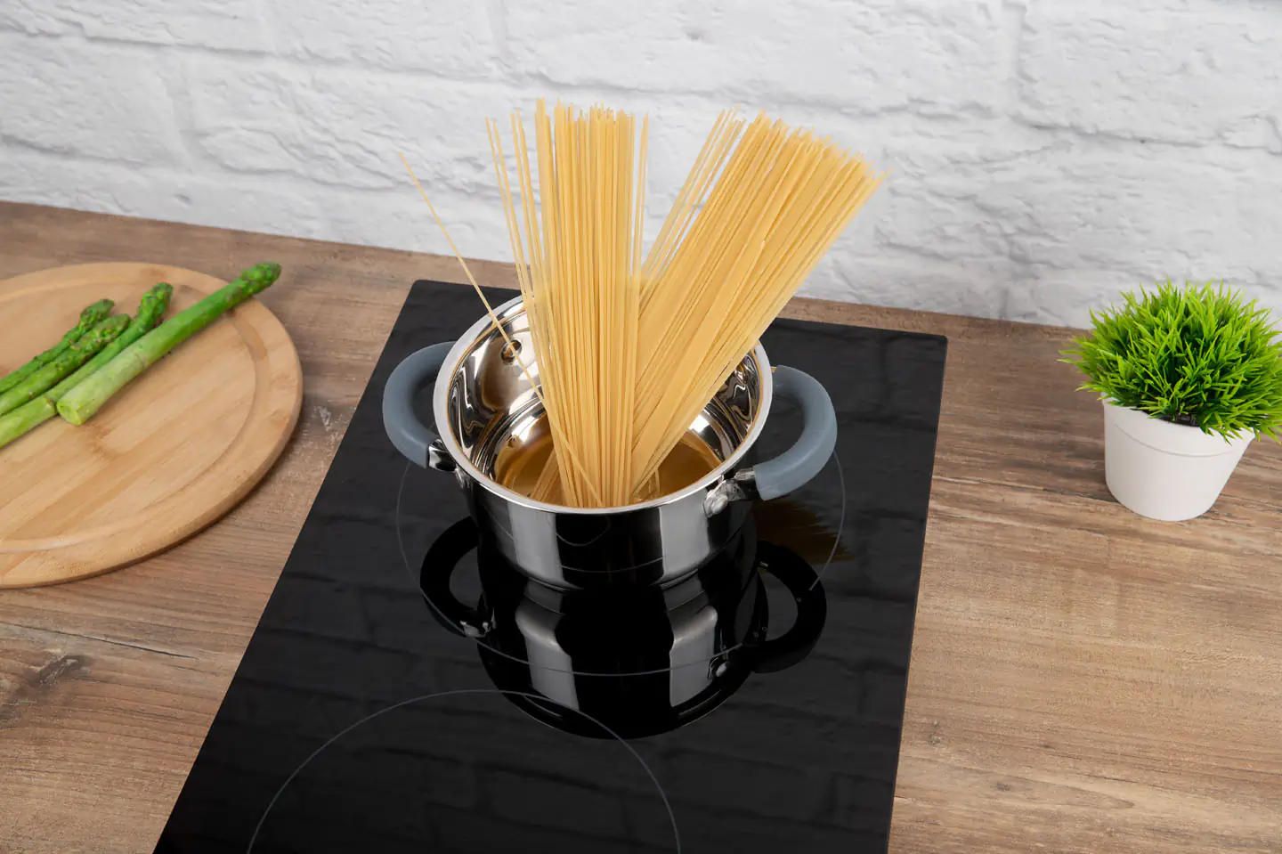 Hansa BHI38377 — це компактна індукційна варильна поверхня розміром 30 см з двома зонами нагрівання, сенсорним LED-керуванням і гладкою чорною скляною поверхнею зі скошеними краями. Вона має до 9 рівнів потужності, функцію підсилення, індикатор залишкового тепла, захист від дітей та функції безпеки, такі як захист від перегріву та виявлення переливу. З загальною потужністю 3,7 кВт, опціями таймера та зручним переднім управлінням, ця варильна поверхня поєднує в собі ефективність, безпеку та сучасний дизайн для щоденного приготування їжі.