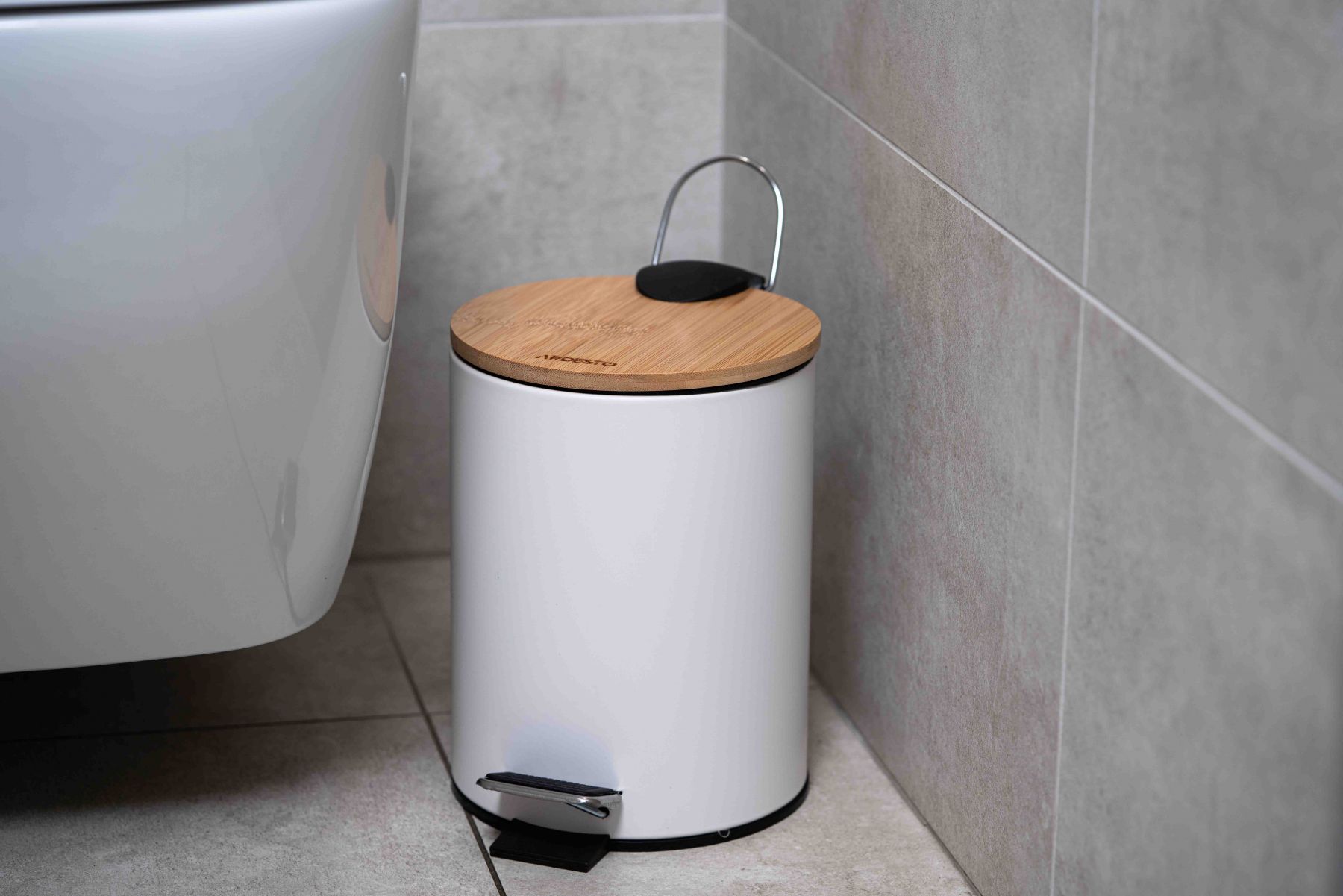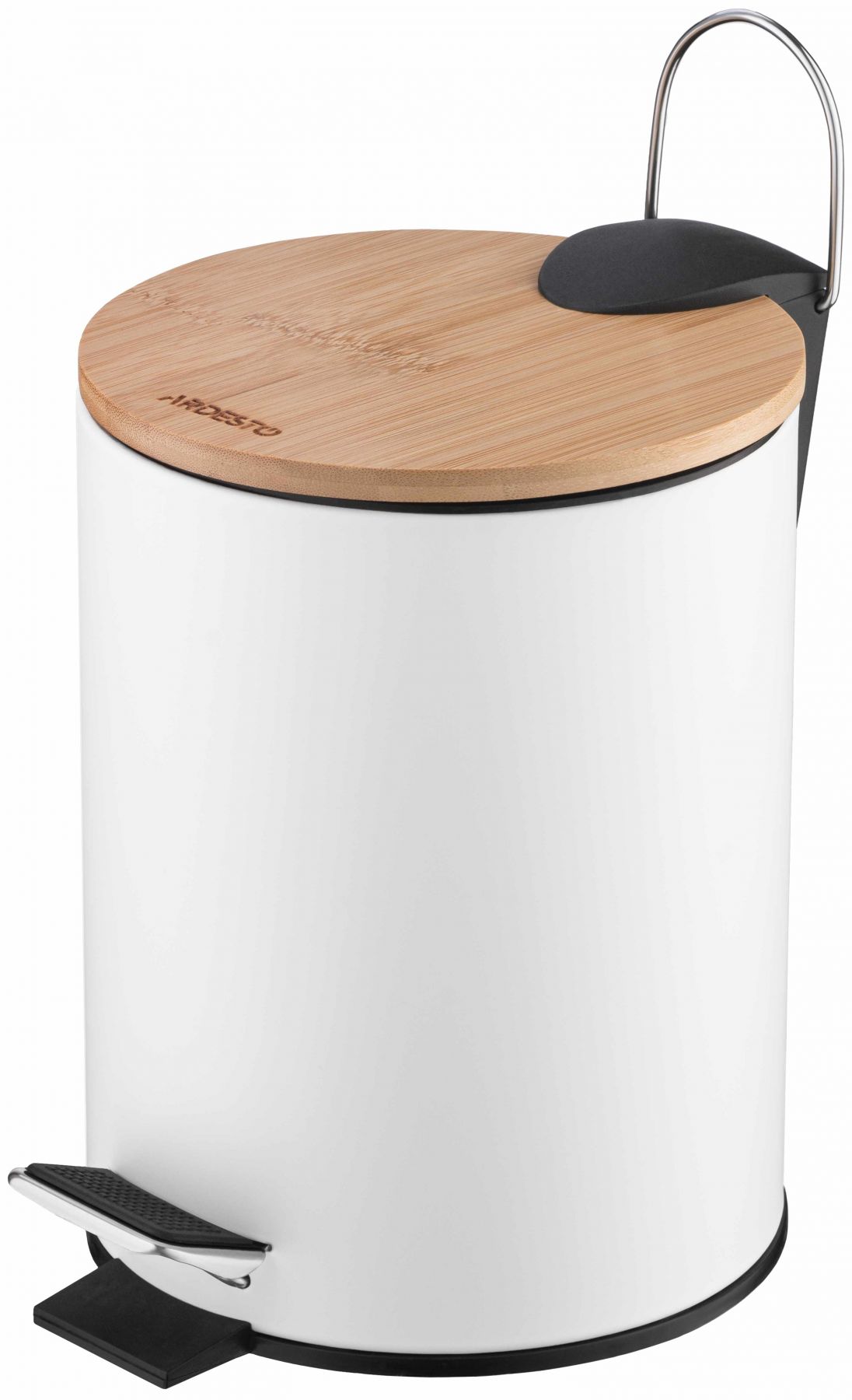 Відро для сміття Ardesto Minimalism з педаллю, 3л, метал, пластик, бамбук, білий