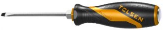 Tolsen SL6.5x100 мм — це міцна ударна плоска викрутка, розроблена для виконання важких монтажних робіт. Виготовлена зі сталі CrV, має посилене жало та надійний металевий ковпачок для ударних навантажень, а також ергономічну ручку для комфортного утримання.