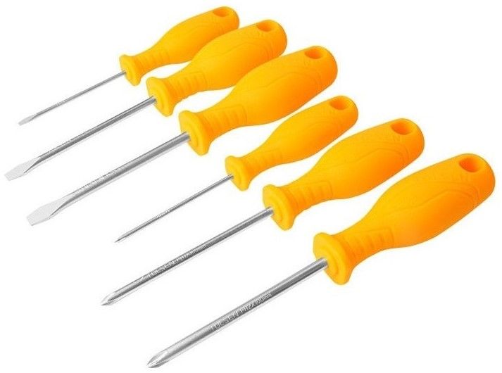 Набір викруток Tolsen 20738 (6 шт., SL, PH) – універсальний комплект для роботи з кріпленнями різних типів. Викрутки мають ергономічну рукоятку з протиковзким покриттям, яке стійке до оливи та легко очищується. Оснащені великим отвором для підвішування, що забезпечує зручне зберігання.