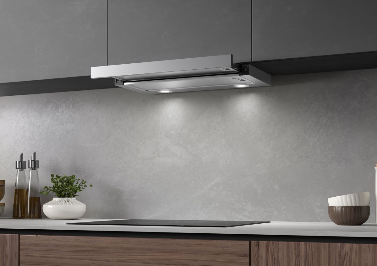 Витяжка Faber TLSC X A60 2LS шириною 60 см телескопічного типу чудово підходить для компактних кухонь. Має два рівні швидкості з максимальною продуктивністю до 580 м³/год. Електромеханічне керування забезпечує простоту у використанні, а LED-підсвітка 5500K створює комфортне освітлення. Жировий фільтр легко мити в посудомийній машині, що спрощує догляд.