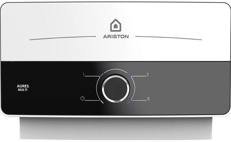 Водонагрівач електр. Ariston проточний AURES SM 7.7, 4,4л.хв, 7,7кВт, горизонтальний монтаж, мех. кер-ння, A, В'єтнам, біло-чорний