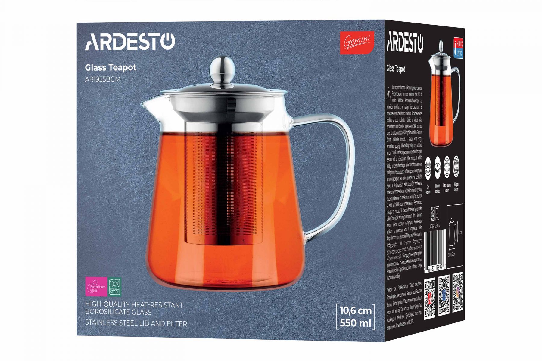 Заварник Ardesto Gemini Milano 550мл, боросилікатне скло, нержавіюча сталь, прозорий