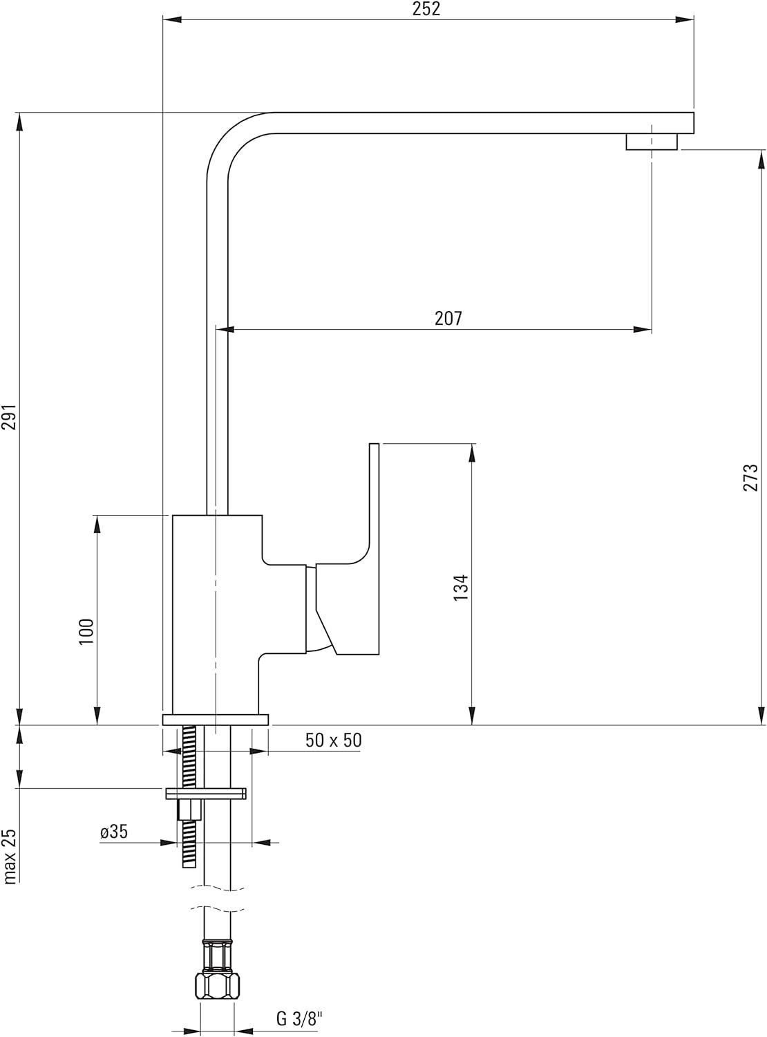 Монтажна різьба:3/8 ''