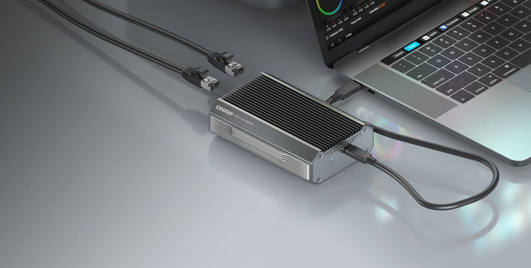 Насолоджуйтесь стабільною високошвидкісною мережею 10GbE за допомогою з'єднання USB Type-C, щоб значно підвищити ефективність роботи навіть на комп'ютерах без вбудованих мережевих портів. QNA-UC10G1T включає 1-метровий кабель USB 4 для підключення до портів USB 4 або Thunderbolt 3/4 вашого комп'ютера.