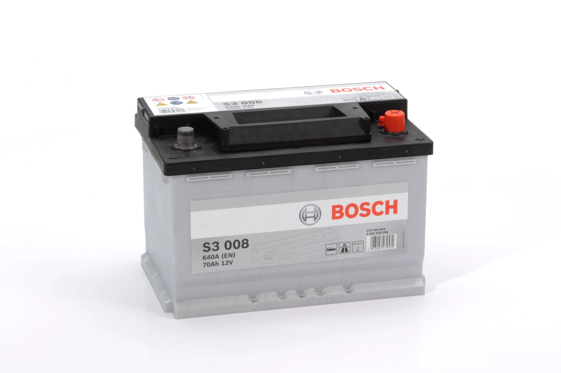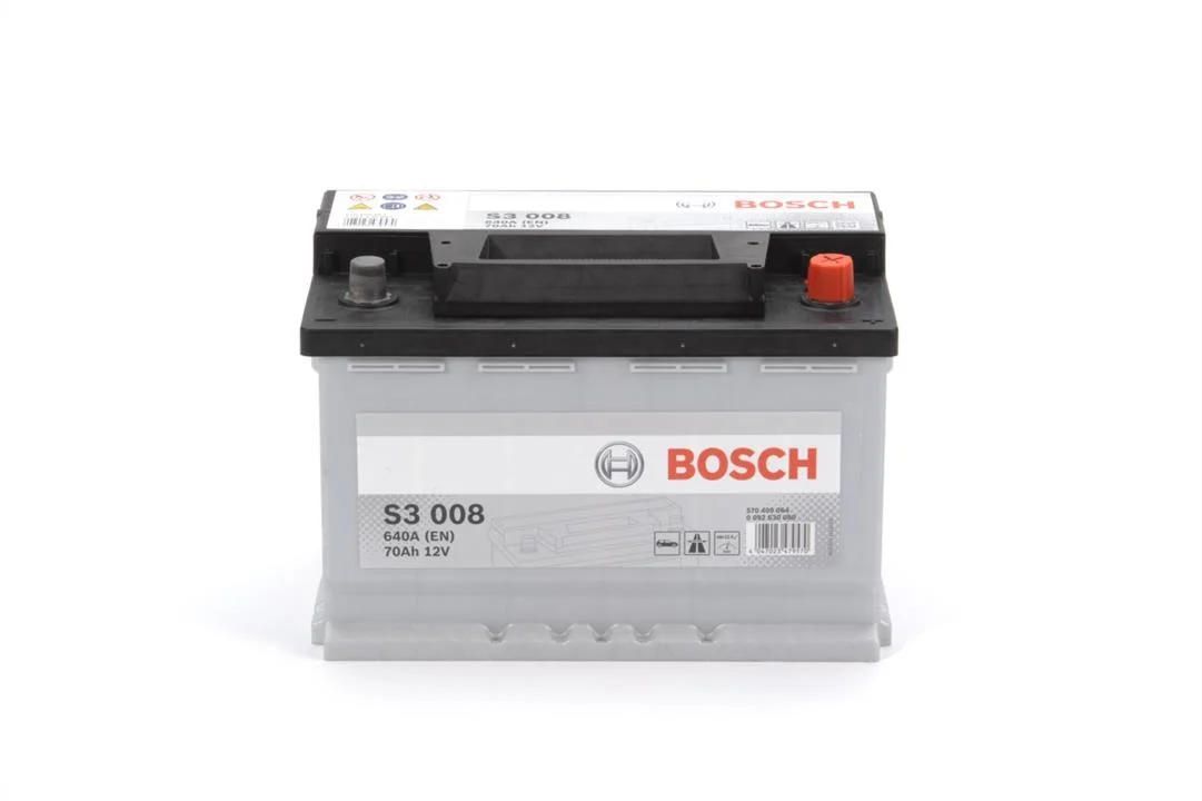 Акумулятор Bosch S3 12В 70 А·год 640А R+ (0 092 S30 080) призначений для легкових автомобілів. Модель має ємність 70 А·год і пусковий струм 640 А за стандартом EN. Полярність з плюсом праворуч і кріплення B00 без фіксації забезпечують гнучкість встановлення. Розміри 278 x 175 x 190 мм і вага 16,60 кг відповідають типовим моторним відсікам.