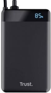 Trust Fiera 10000 мА·год (25880) — компактний та стильний павербанк з вбудованим кабелем USB-C, що забезпечує швидке заряджання до 20 Вт (PD 3.0 + QC 3.0). Має ємність 10000 мА·год, два порти USB-C (один для зарядки самого павербанка та пристроїв, другий тільки вихід), світлодіодний дисплей з точним відсотком заряду (0–100 %) та індикацією PD-режиму. Корпус алюмінієвий чорний, товщина ≈15–18 мм, вага ≈200 г — зручно носити в кишені. Дозволяє заряджати смартфон від 0 до 50 % приблизно за 30 хвилин, а сам павербанк повністю заряджається за 3–4 години. Безпечний для ручної поклажі в літаку, відповідає нормам авіакомпаній (≤100 Вт·год).