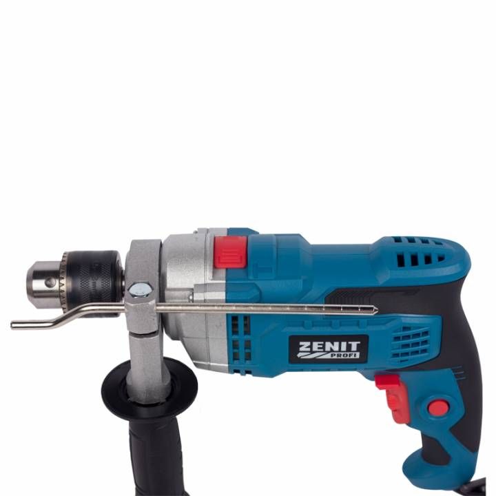 Дриль ударний електричний ЗДП-1050 Профи призначений для свердління отворів в конструкційних та будівельних матеріалах, при цьому наявність ударного режиму дозволяє разові свердління отворів з ударом в крихких будівельних матеріалах типу бетону у побутових умовах. Ергономічна модель з оптимальною комплектацією і якістю збірки: прогумована передня рукоять, поліпшена обмотка двигуна для захисту від перегріву та замикань, регулятори режимів роботи і включення.