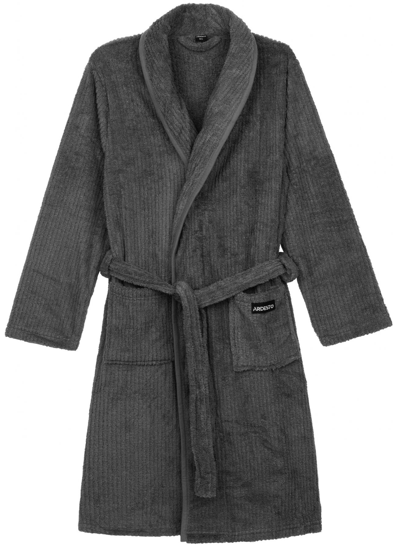 Чоловічий халат ARDESTO Stripe темно-сірого кольору – практичний вибір з акцентом на комфорт. Довжина виробу становить 112 см, розмір – M/L. Модель виготовлено зі 100 % поліестеру, що зумовлює зносостійкість і простий догляд. Матеріал добре зберігає форму та швидко висихає за умови дотримання рекомендацій щодо догляду: делікатне прання за температури до 40 °C без машинного віджимання і сушіння, за потреби допустимо застосовувати відбілювач без хлору, не потребує прасування.