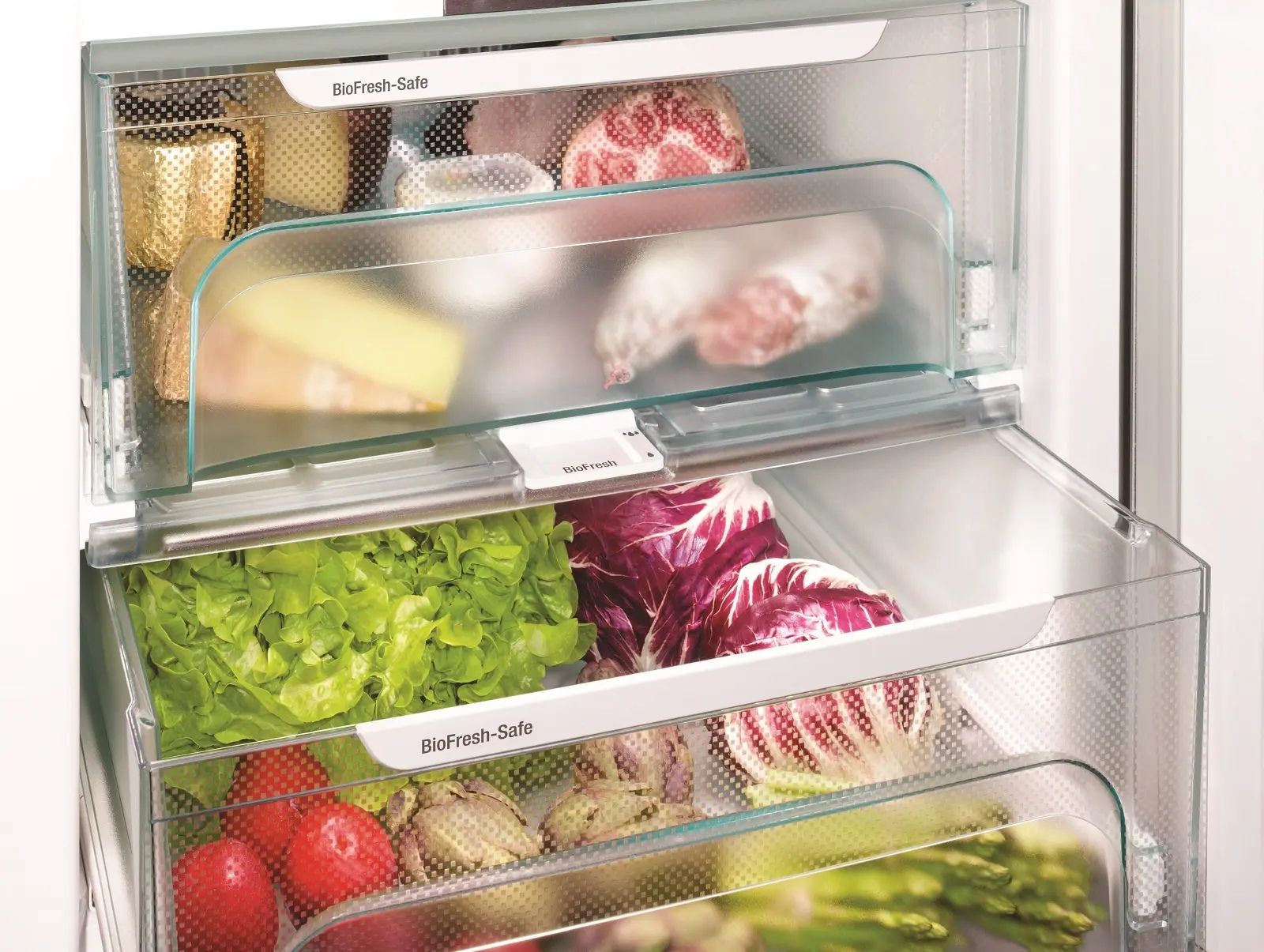 Функції / можливості:Регульовані ніжки, Захист від дітей, NoFrost, DuoCooling, VarioSpace, FrostSafe, SuperFrost, FrostControl, SmartSteel, SmartDevice, BioFresh, Можливість on/off холодильної та морозильної камери, 3 температурні зони, сигналізація відкритих дверей, Можливість окремо регулювати температуру в морозильній камері, SuperCool, попереджувальний сигнал несправності, Індикація температури в холодильній/морозильній камері (внутрішня цифрова)