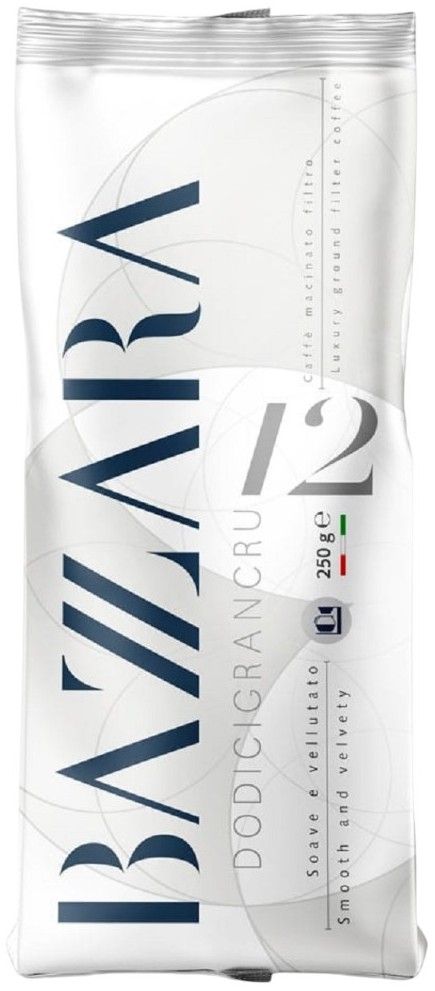Кава Bazzara Dodicigrancru, 250 г, 100% арабіка в зернах. Вишукана суміш із 12 сортів преміальної арабіки з найкращих регіонів світу поєднує гармонійний смак і витончений післясмак. Вакуумна упаковка зберігає свіжість і насиченість кожного зерна.