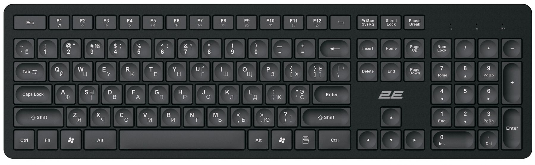 Клавіатура мембранна 2E KS260 106key, WL, EN/UK/RU, чорний