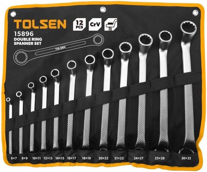 Набір Tolsen з 12 накидних ключів призначений для використання при ремонтах та обслуговуванні автомобілів. Ключі виготовлені з хромованадієвої сталі з сатиновим покриттям, що подовжує термін служби інструменту.
