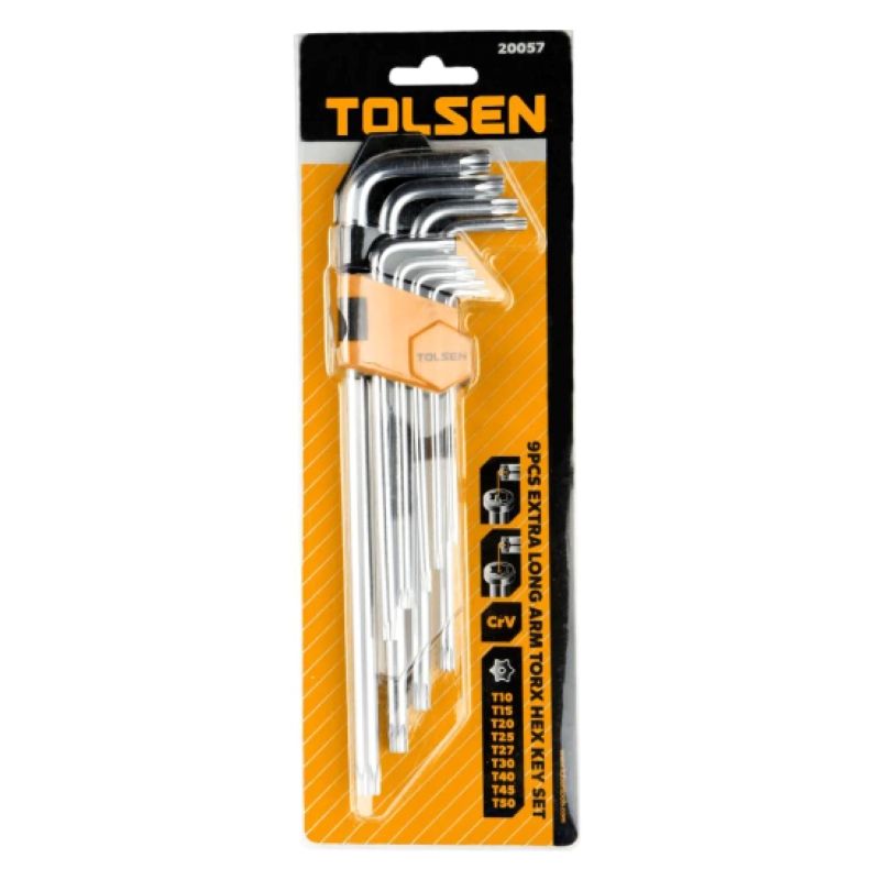 Ключі шестигранні Tolsen, набір 9шт, подовжені, довгі, кулястий наконечник, Тorx 10-50, CrV