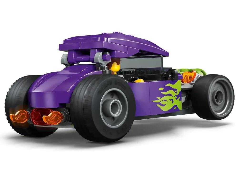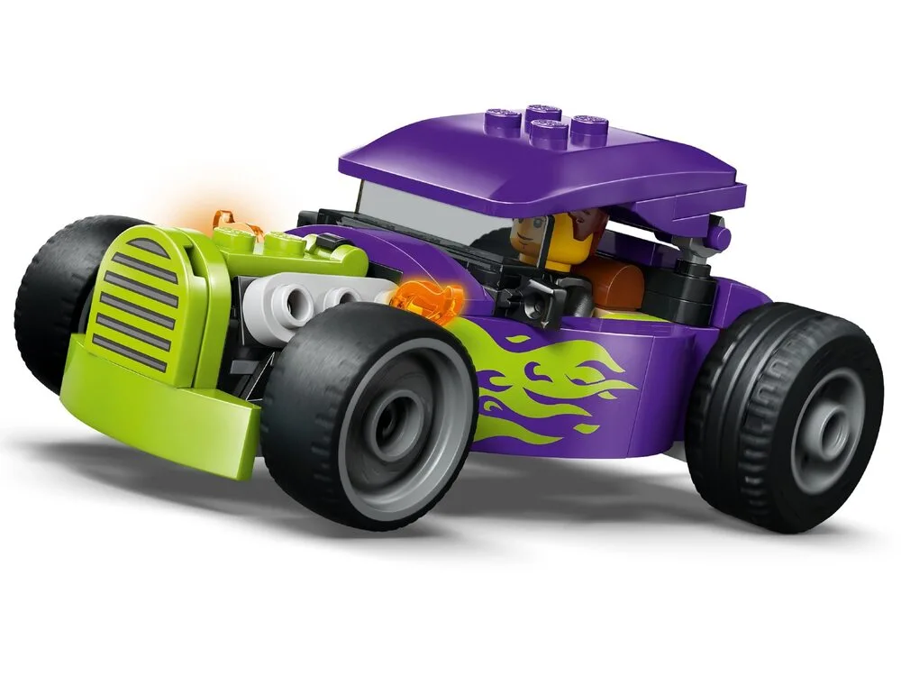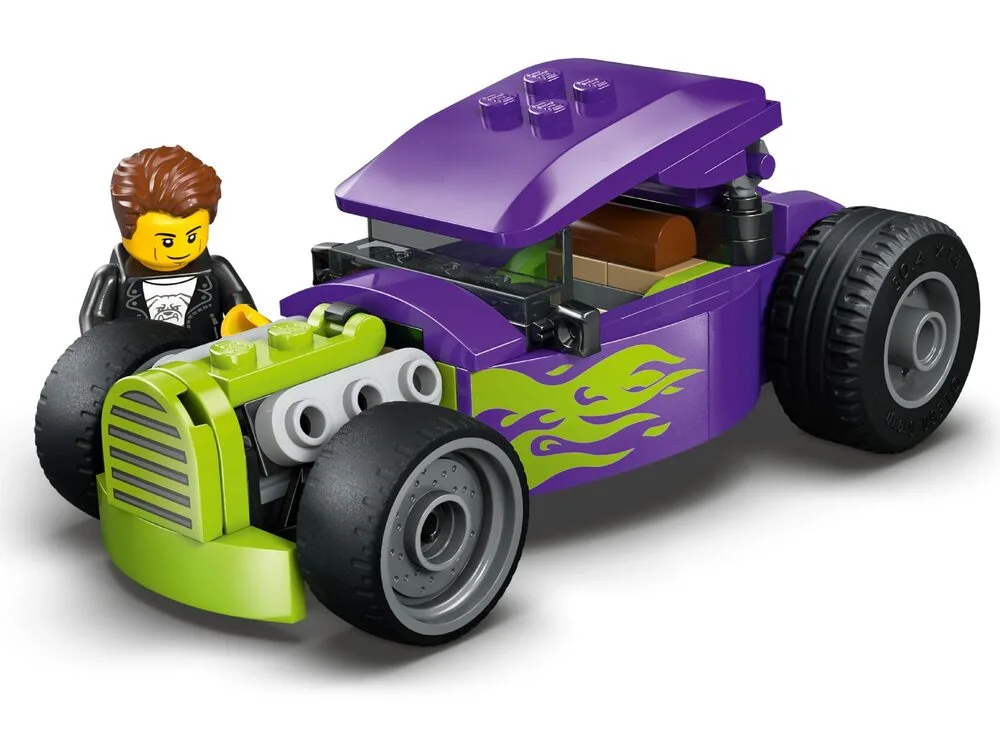 LEGO City Хотрод (60485) — яскравий набір для дітей від 5 років, що відтворює класичний гоночний автомобіль у стильній фіолетовій гамі з неоновим зеленим полум’ям, збільшеними задніми шинами та кабіною водія з підйомним дахом. Діти можуть посадити мініфігурку водія та уявляти швидкісні перегони, вуличні трюки чи змагання. Набір розвиває уяву, дрібну моторику та любов до класичних машинок. Чудовий подарунок для юних гонщиків та любителів динамічних ігор. Містить 81 деталь та інструкції в додатку LEGO Builder з 3D-переглядом.