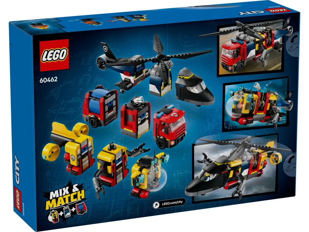 Конструктор LEGO City Ремікс вертольотів, пожежних машин і підводних човнів