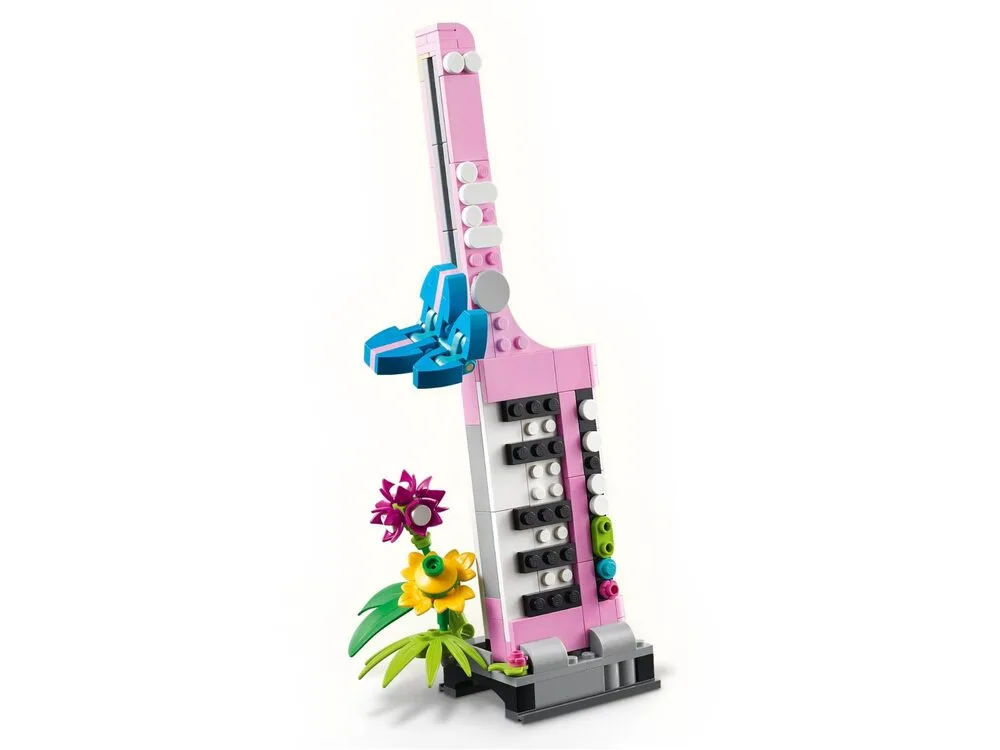 Конструктор LEGO Creator «Друкарська машинка з квітами» 31169 — це набір із серії 3-в-1, що дозволяє зібрати одну з трьох різних моделей. Основна з них — вінтажна друкарська машинка з рухливою клавіатурою, декоративними квітами та «аркушем паперу» з кубиків. Альтернативні збірки включають клавітару на підставці з квітами і горщик для квітів із блокнотом та ручкою. Під час складання розвиваються просторове мислення та творчі навички.