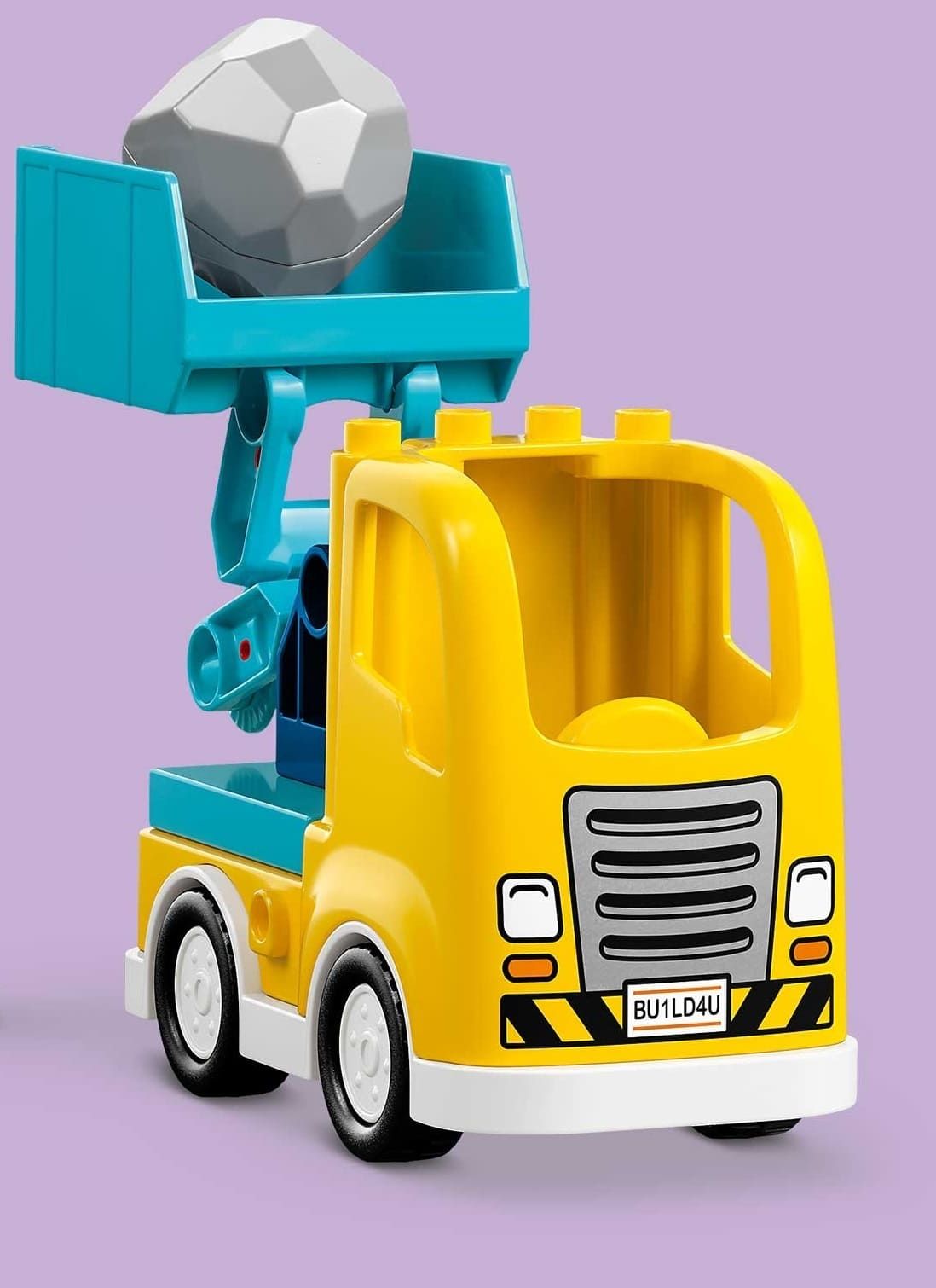 Розвивайте творчі здібності своєї малечі за допомогою набору LEGO® DUPLO® Місто 3-в-1 Будівельна техніка (10475) для дітей від 2 років. Ігровий час сповнений веселощів перебудовування, адже малюки зосереджуються на створенні 6 різних варіантів іграшкових вантажівок. З 22 кубиків цього будівельного конструктора LEGO DUPLO можна скласти 3 пари вантажівок: навантажувач із перекидним ковшем, який завантажує кубики в самоскид, екскаватор та евакуатор із поворотною стрілою або ножичний підйомник і другий евакуатор з меншим гаком для піднімання кубиків.