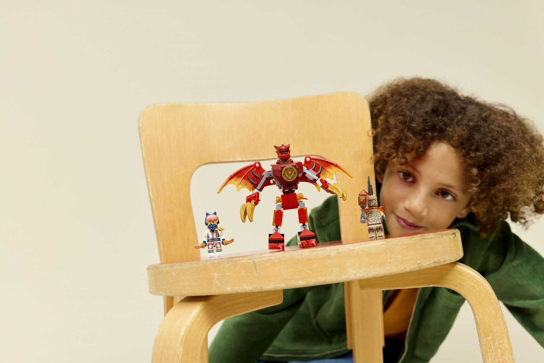 Хлопчики, дівчатка та шанувальники серіалу NINJAGO® «Повстання драконів» віком від 6 років можуть насолоджуватися годинами творчої гри з набором для конструювання LEGO® NINJAGO Бойовий набір робота Дракона Кая (71851). Цей ігровий набір містить іграшкового робота-дракона з рухомими ногами, великими крилами, пазуристими лапами й верхньою частиною тіла, що обертається на 360 градусів, а також кабіною, куди можна помістити мініфігурку.