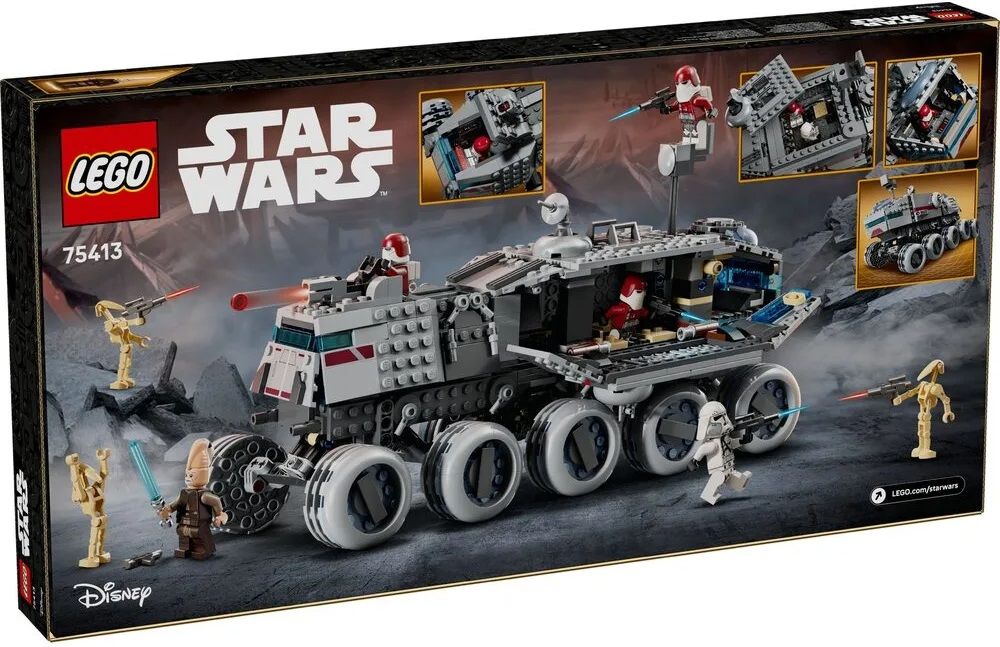 Конструктор LEGO Star Wars 75413 відтворює броньований транспорт «Джаггернаут» Великої армії Республіки. Набір містить велику кількість деталей і орієнтований на складнішу збірку. Конструкція передбачає рухомі елементи та ігрові функції. Підходить для сюжетної взаємодії та колекціонування. Тематика базується на подіях всесвіту Star Wars.