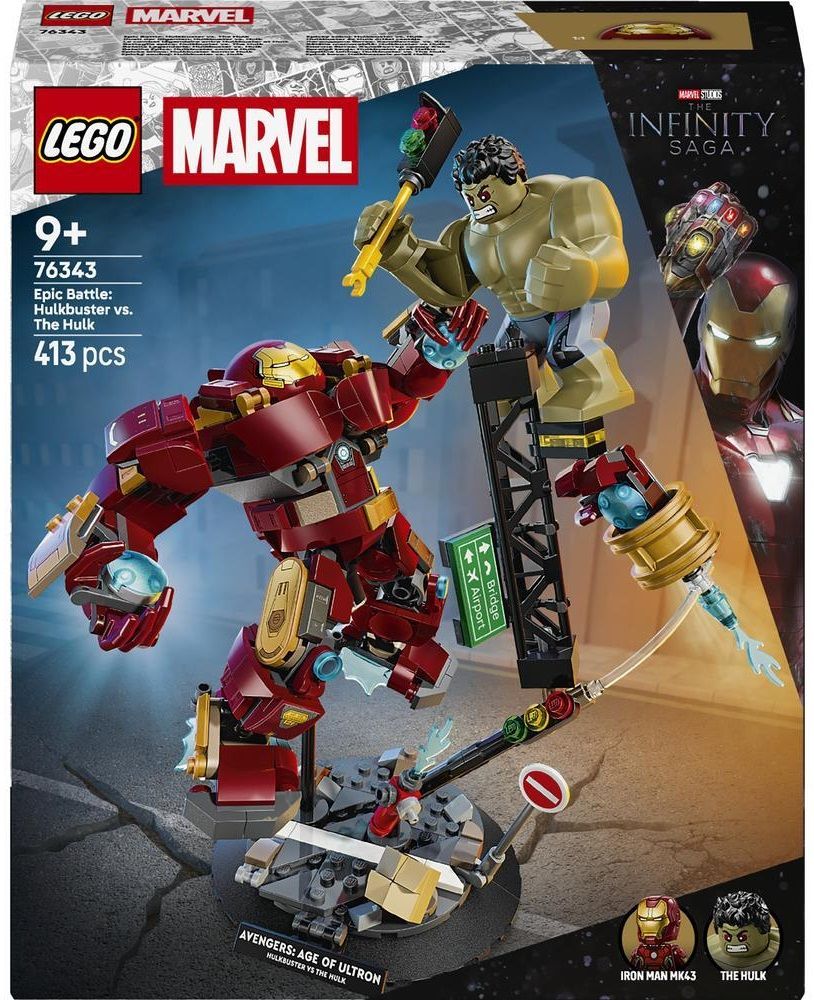 Оживіть події фільму від Marvel Studios «Месники: Ера Альтрона» з набором для конструювання LEGO® Marvel Легендарна битва: Халкбастер vs. Халк (76343) для хлопчиків і дівчаток віком від 9 років. Цей дивовижний набір, що містить мініфігурки Залізної Людини й Халка, а також культову броню «Халкбастер», відкриває дітям безмежні можливості для творчих сюжетних ігор та креативного демонстрування. Залізна Людина бореться з Халком у своїй броні «Халкбастер» на тлі вулиці, заваленої уламками, напівзруйнованих сталевих конструкцій і світлофора, який Халк може використовувати як зброю.