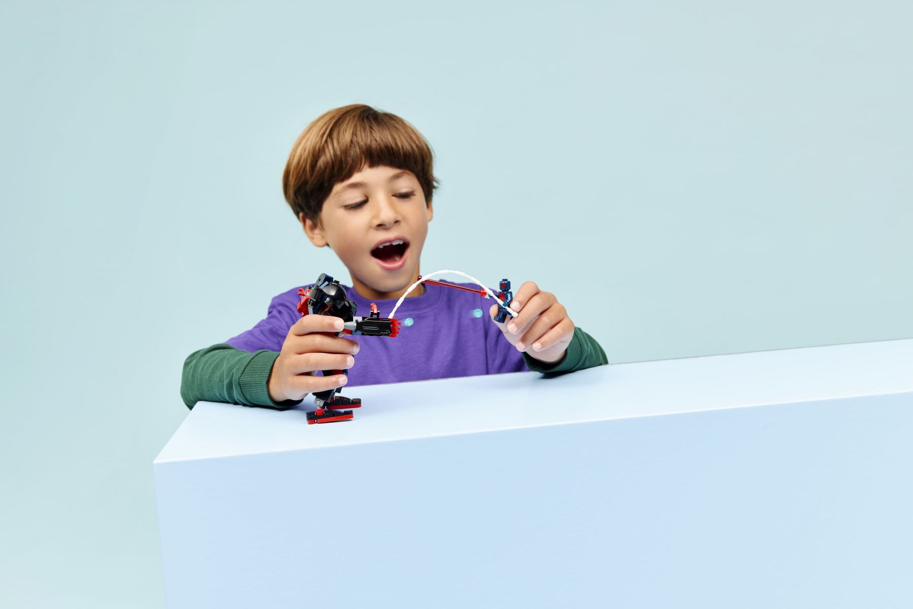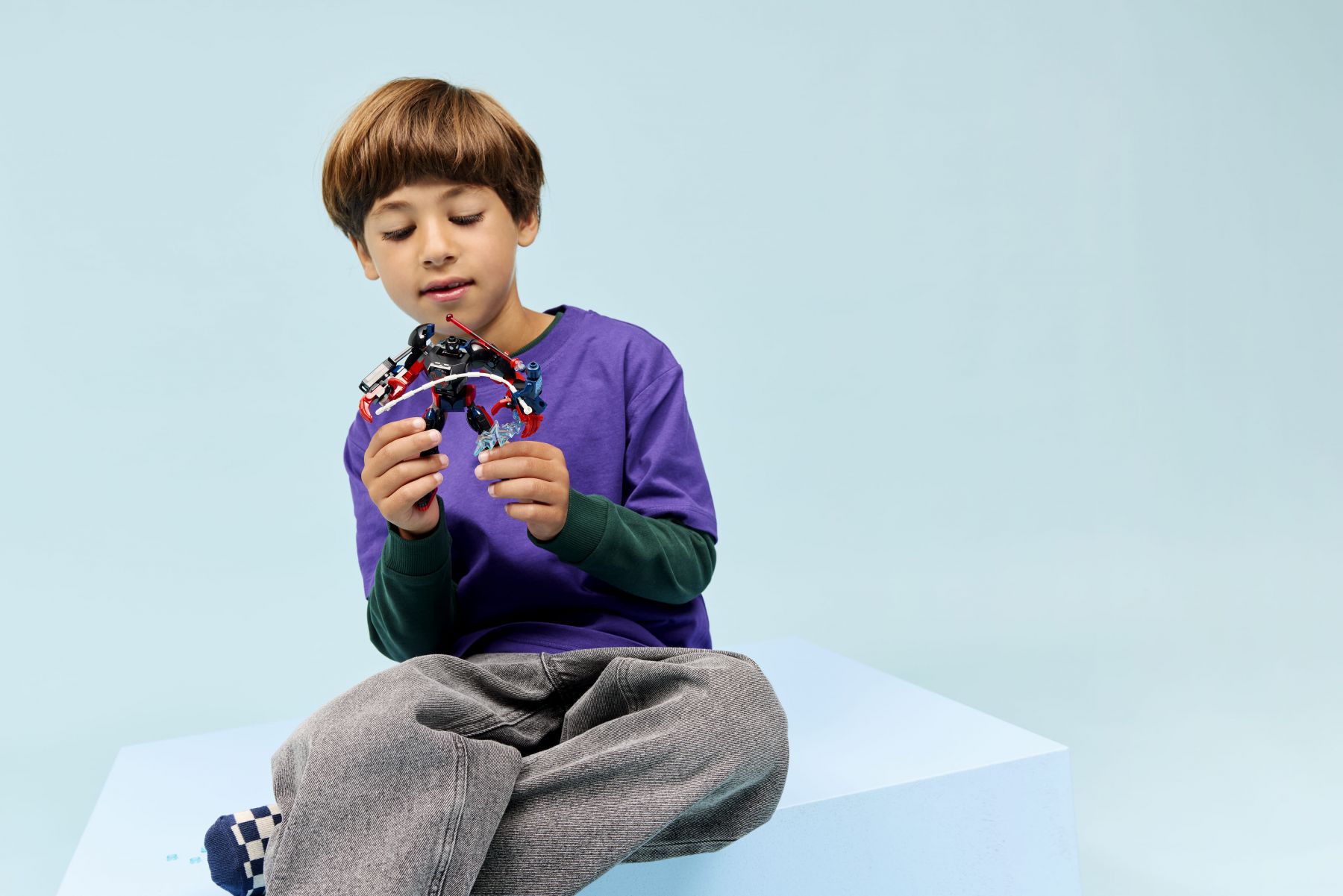 Оживіть грандіозні битви з фільмів Marvel за допомогою набору «Робот Майлза Моралеза vs. Людина-павук 2099» (76337) — супергеройського конструктора для хлопчиків і дівчаток віком від 6 років. Ця дитяча іграшка для будування та гри спонукатиме до безлічі сюжетних ігор завдяки великому шарнірному роботу, а також мініфігуркам Людини-павука й Майлза Моралеза. Цей набір LEGO® ǀ Marvel передає сцени з фільму Marvel Studios «Людина-павук: Крізь Всесвіт» до рук дітей: рухомий робот буквально створенийдля динамічних ігор. На руках робота є знімний 3-шиповий шутер, павутина й потужні павутинні снаряди з лезами, щоб битва тривала без упину.