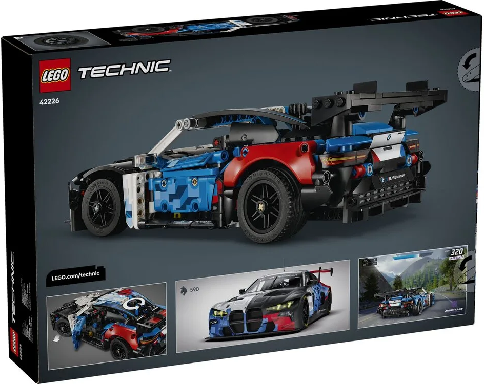 Конструктор LEGO Technic Автомобіль для перегонів BMW M4 GT3 EVO 42226 відтворює гоночний автомобіль серії GT у форматі технічної моделі. Набір дозволяє зібрати деталізований автомобіль із характерними елементами аеродинамічного кузова. Рухомі вузли конструкції демонструють принципи роботи механізмів транспортної техніки. Модель підходить для складання, дослідження інженерних рішень і демонстрації.