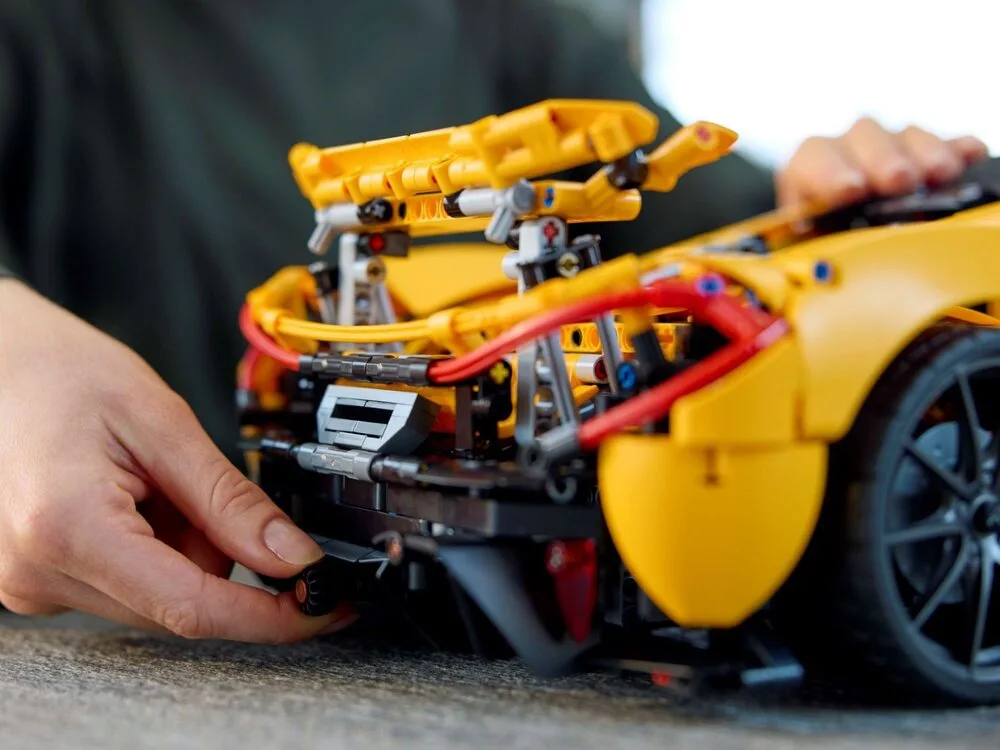 Конструктор LEGO Technic McLaren P1 42172 — масштабний набір для досвідчених будівників із реалістичними механічними функціями. Модель відтворює легендарний суперкар у масштабі 1:8 із відкривними «метеликовими» дверима, діючою підвіскою й рульовим управлінням. Під капотом — V8-двигун із рухомими поршнями та 7-швидкісна коробка передач із двома барабанами перемикання. Деталі також включають регульоване заднє антикрило та знімну кришку моторного відсіку для перегляду інтер’єру.