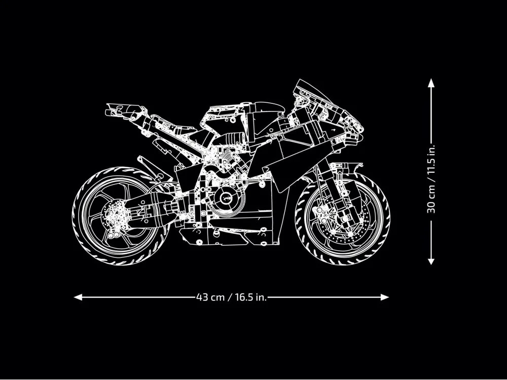 Конструктор LEGO Technic Ducati Panigale V4 S Motorcycle 42202 пропонує масштабну модель легендарного спортивного мотоцикла Ducati на основі інженерних рішень LEGO Technic. Набір містить 1 603 деталі для детальної побудови підвісок, рульового управління та коробки передач із трьома швидкостями (плюс «нейтраль»). Модель оснащена ланцюговим приводом, що з’єднує двигун V4 із заднім колесом. Готовий мотоцикл чудово виглядає на стенді та підходить для колекції й демонстрації.