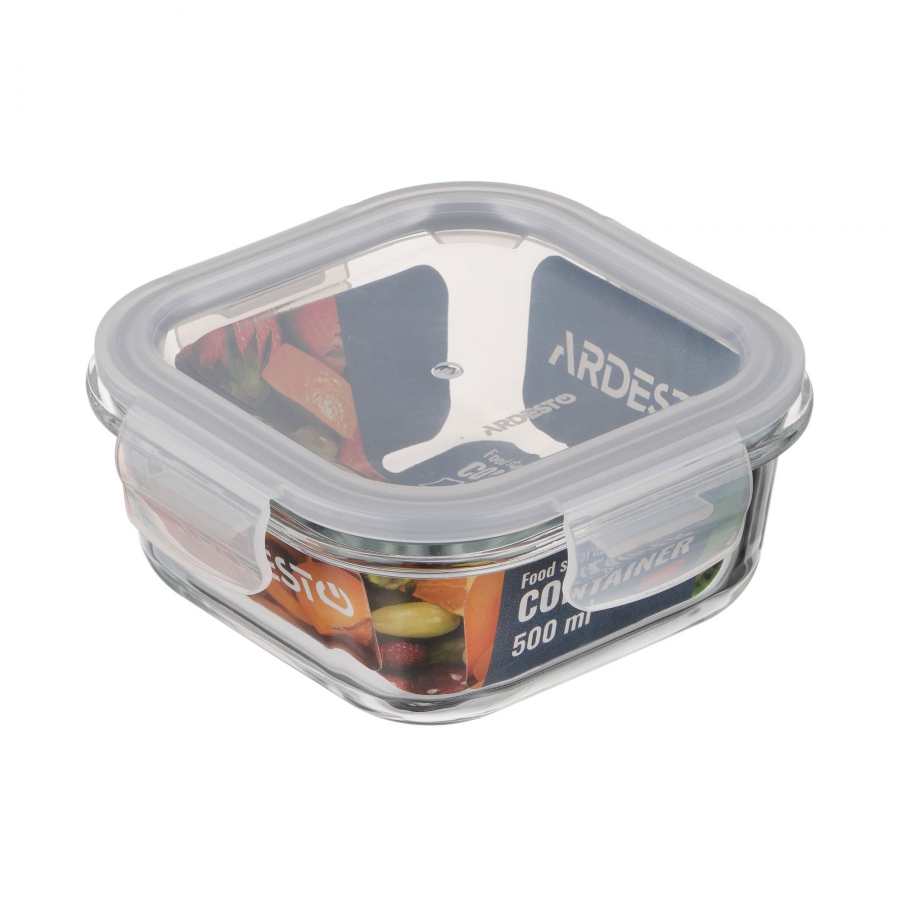 Контейнер для зберігання харчових продуктів Ardesto Gemini 0.5л, боросилікатне скло, пластик, квадратний, прозорий