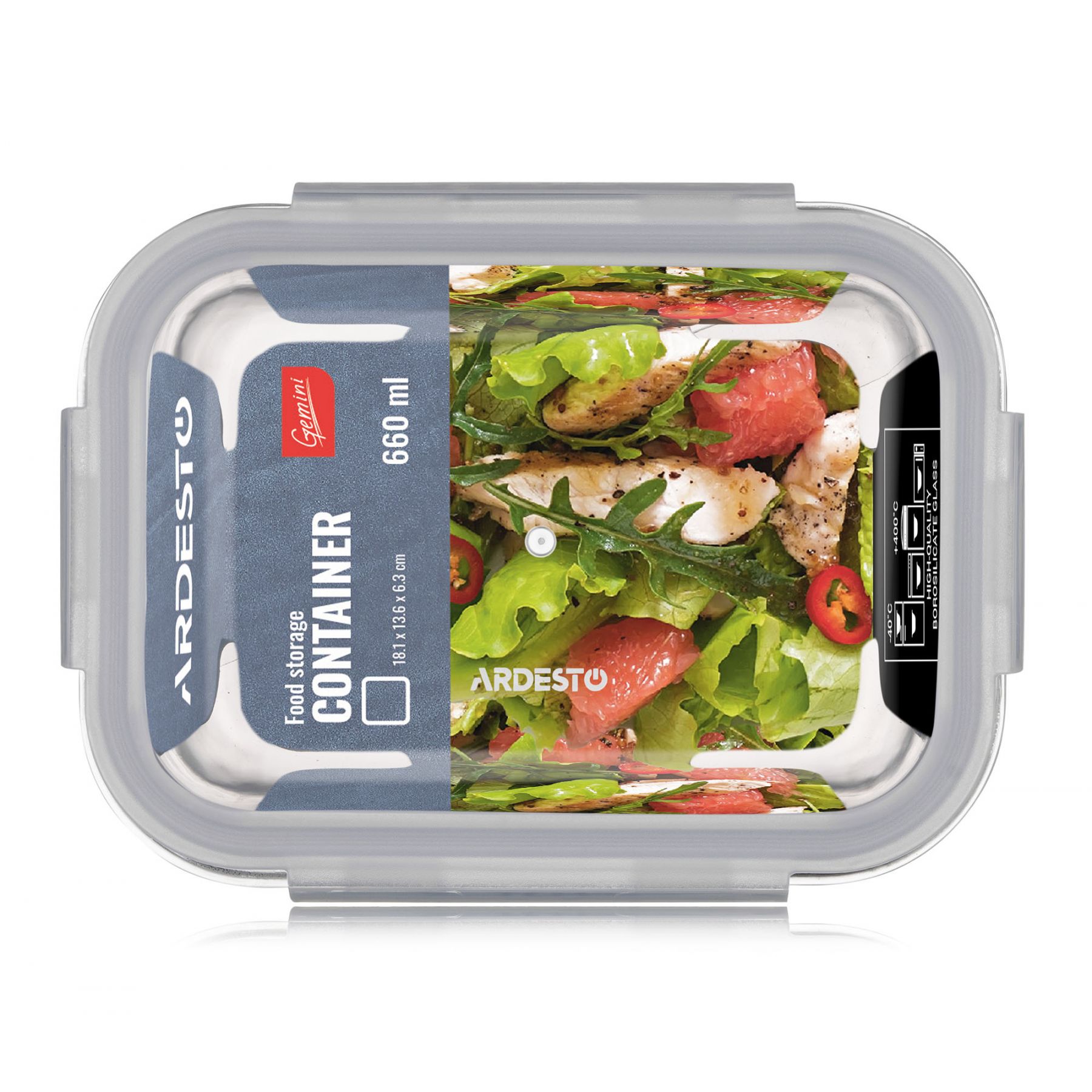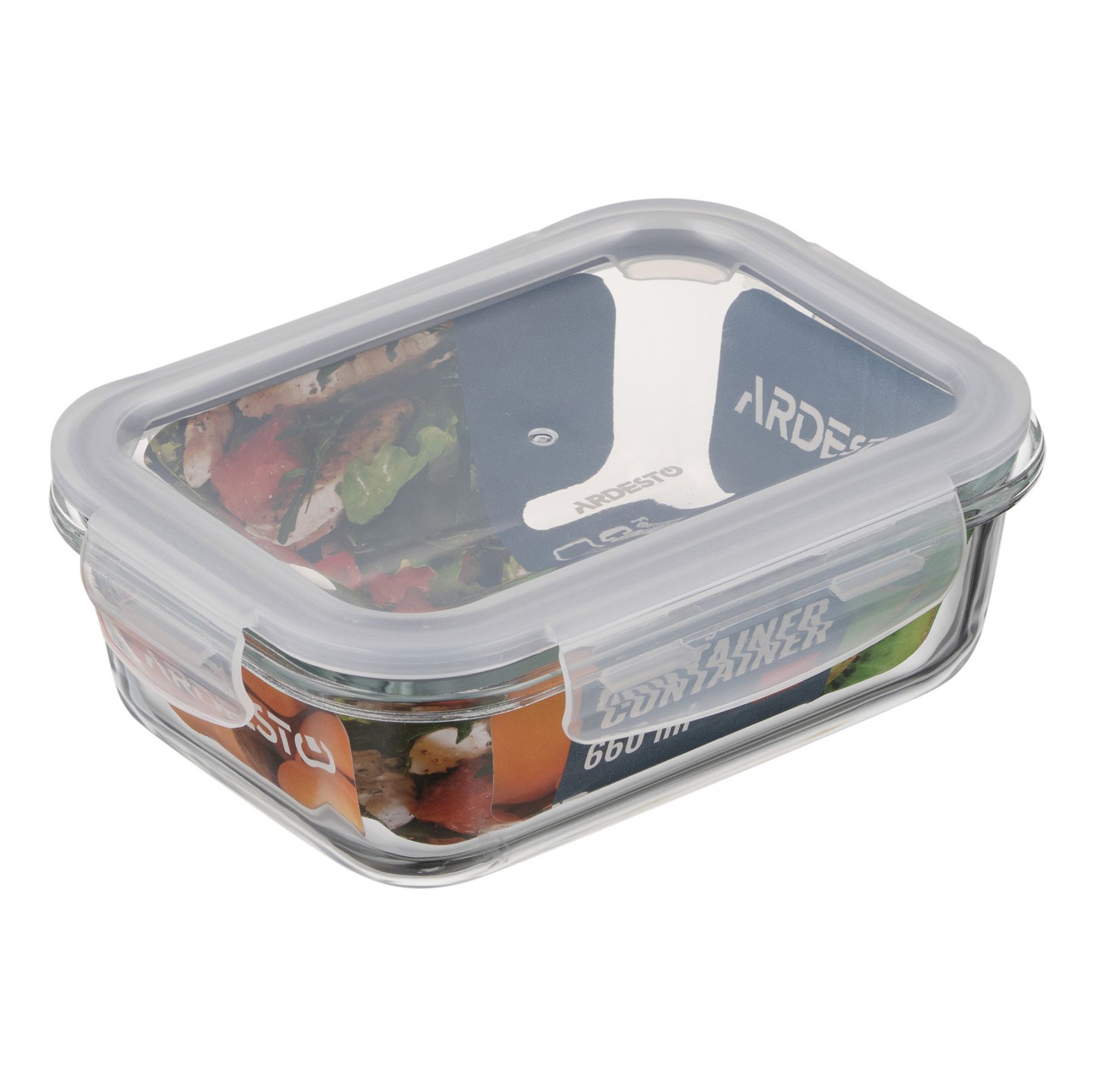 Контейнер для зберігання харчових продуктів Ardesto Gemini 0.66л, боросилікатне скло, пластик, прямокутний, прозорий