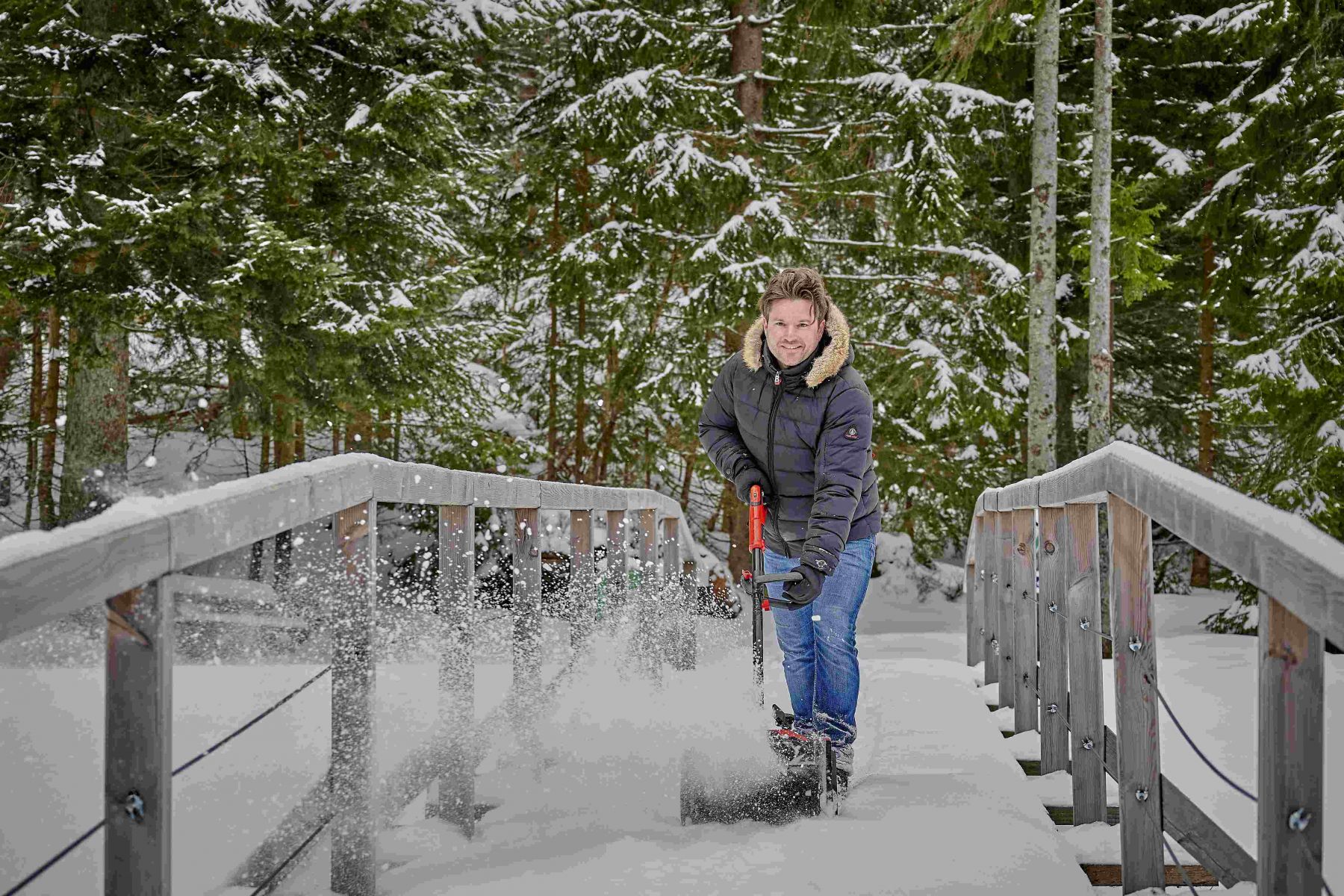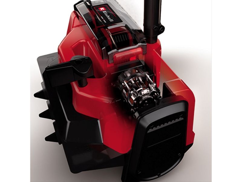 Особливості:поворотний механізм викиду снігу з можливістю зміни напрямку, електронний контроль швидкості обертання, акумуляторний відсік із кришкою на магнітній фіксації для захисту від снігу та вологи, додаткова ручка для керування двома руками, вбудована ручка для транспортування, ергономічна основна рукоятка з м’яким покриттям, двоточковий запобіжний вимикач для запобігання випадковому запуску, можливість вертикального встановлення на поверхню для зберігання
