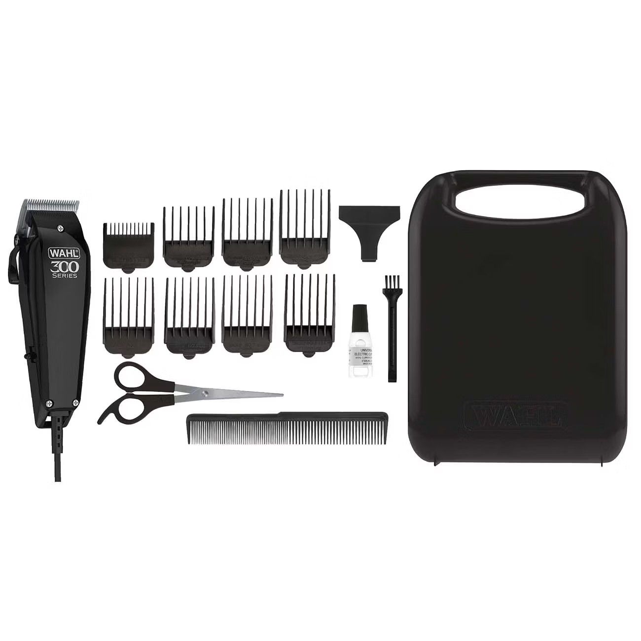 Машинка для стрижки Wahl Home Pro 300, мережа, вібраційний мотор, насадок-10, кейс, масло та ножиці у компл., сталь, чорний