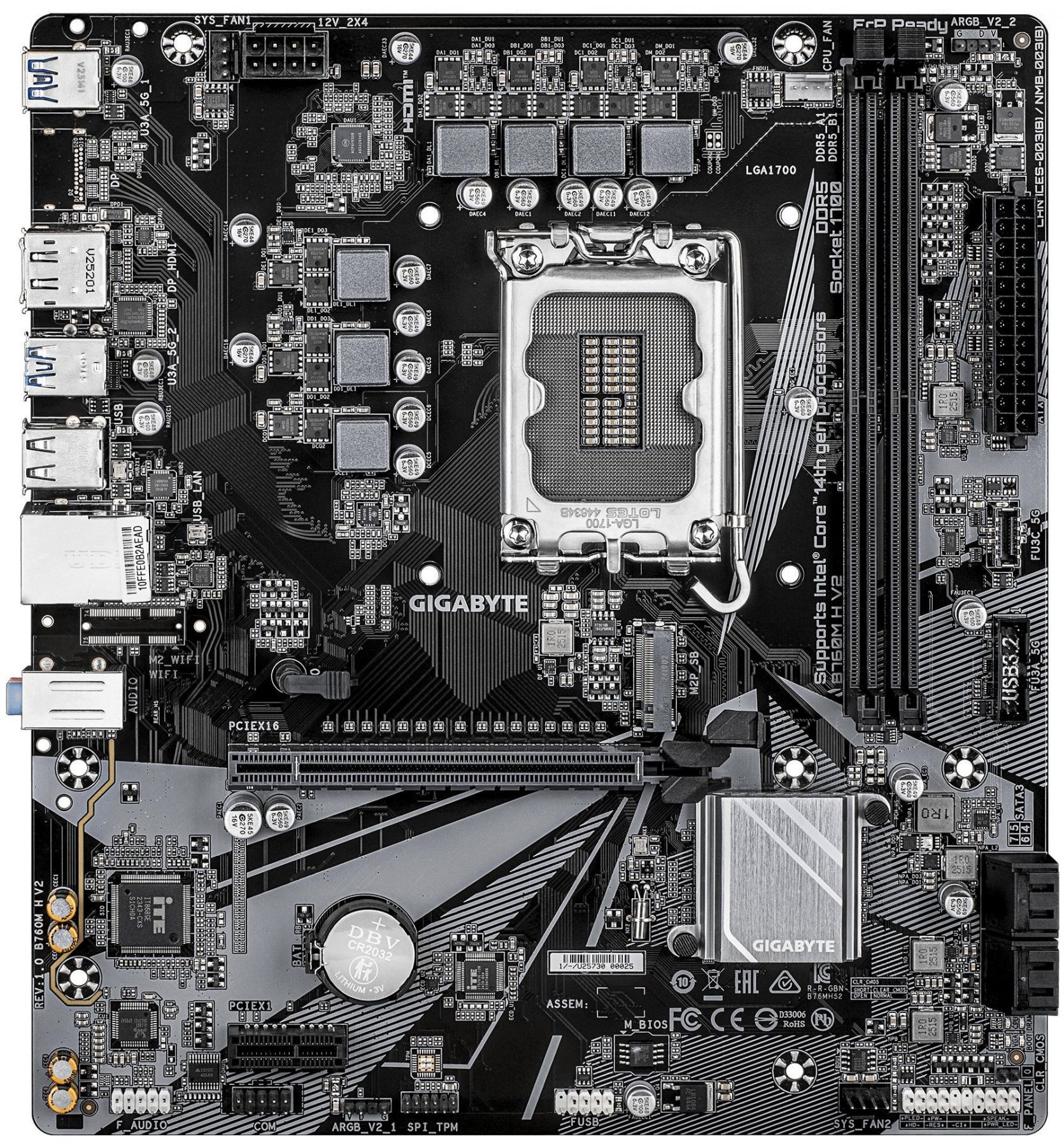 Материнська плата GIGABYTE B760M H V2 розроблена для процесорів Intel 12-го, 13-го та 14-го поколінь із роз’ємом LGA1700. Вона підтримує оперативну пам’ять DDR5 у двоканальному режимі та оснащена слотом PCI Express 4.0 x16. Компактний формат micro-ATX дозволяє створювати продуктивні системи в невеликих корпусах. Наявність роз’єму M.2 PCIe 4.0 забезпечує швидке підключення сучасних SSD. Плата орієнтована на стабільну роботу та зручне складання ПК.