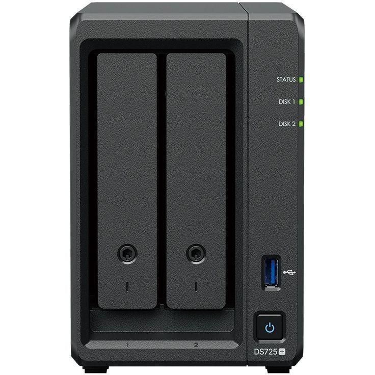 Synology DiskStation DS725+ – це компактне 2-дискове NAS-сховище на базі двоядерного процесора AMD Ryzen R1600 з апаратним шифруванням. Пристрій оснащений 4 ГБ DDR4 ECC пам’яті (з можливістю розширення до 32 ГБ) та підтримує як HDD, так і NVMe SSD для кешування або створення пулів.