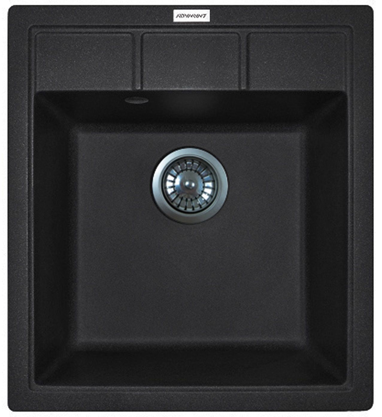 Мийка кухонна Adamant Brick, штучний камінь, квадрат, без крила, 460x515x200мм, чаша - 1, врізна, чорний