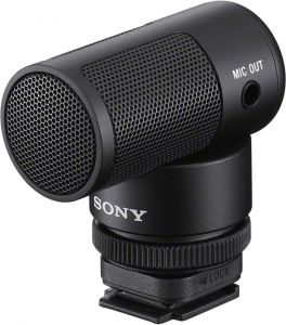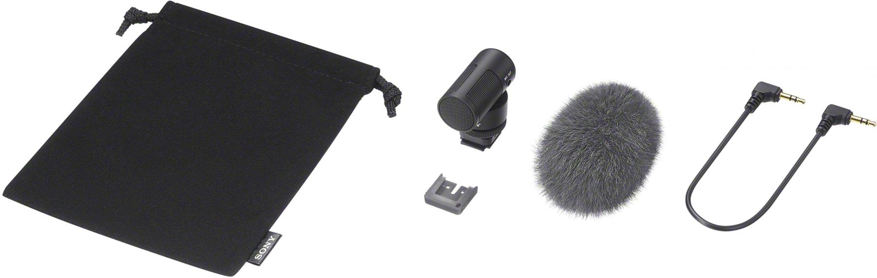 Мікрофон Sony ECM-G1Z з капсулем діаметром 14,6 мм фіксує чіткий голосовий звук, мінімізуючи шум оточення. Компактна конструкція вагою 34 г і довжиною 48,5 мм полегшує кріплення на камеру через Multi Interface Shoe. Живлення та керування надходять від камери для зручного використання. Цей пристрій оптимізує запис аудіо для відеопроєктів. Зображення слугує ілюстрацією.