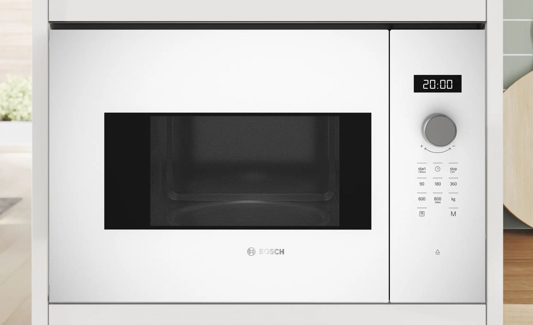Мікрохвильова піч Bosch вбудована, 20л, електр. керув., 800Вт, дисплей, білий