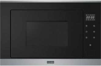 Franke 131.0627.471 — вбудована мікрохвильова піч об’ємом 25 л з потужністю НВЧ 900 Вт і грилем 1000 Вт. Має сенсорне керування, дисплей, 8 автоматичних програм, функції розморожування за часом або масою, таймер до 95 хвилин. Діаметр поворотної тарілки — 31,5 см, внутрішнє покриття — нержавіюча сталь. Доступні режими: НВЧ, гриль, НВЧ + гриль. Підходить для вбудовування в кухонний гарнітур.