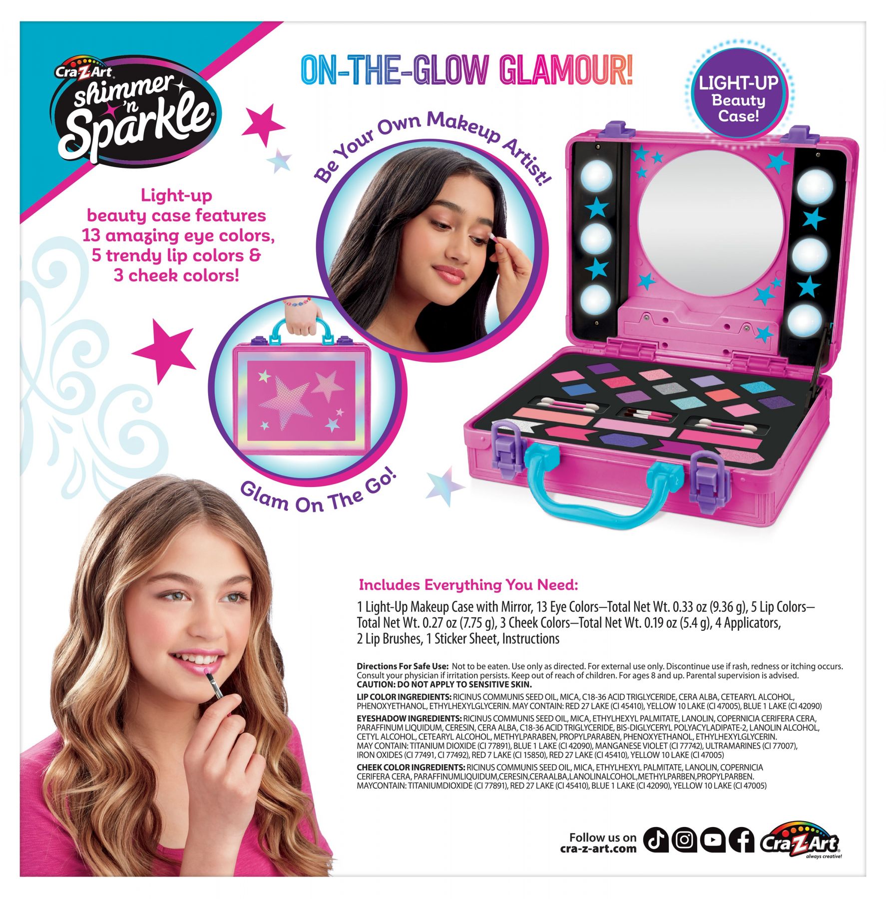 Набір дитячої косметики Cra-Z-Art Light-Up Beauty Studio являє собою б’юті-кейс із дзеркалом і підсвічуванням для творчих рольових ігор. Конструкція містить шість світлових елементів, які формують освітлення робочої зони під час макіяжу. Палітра налічує понад двадцять відтінків декоративної косметики для створення різних варіантів образів. Формат переносного кейса дозволяє зберігати косметику та аксесуари в одному місці.