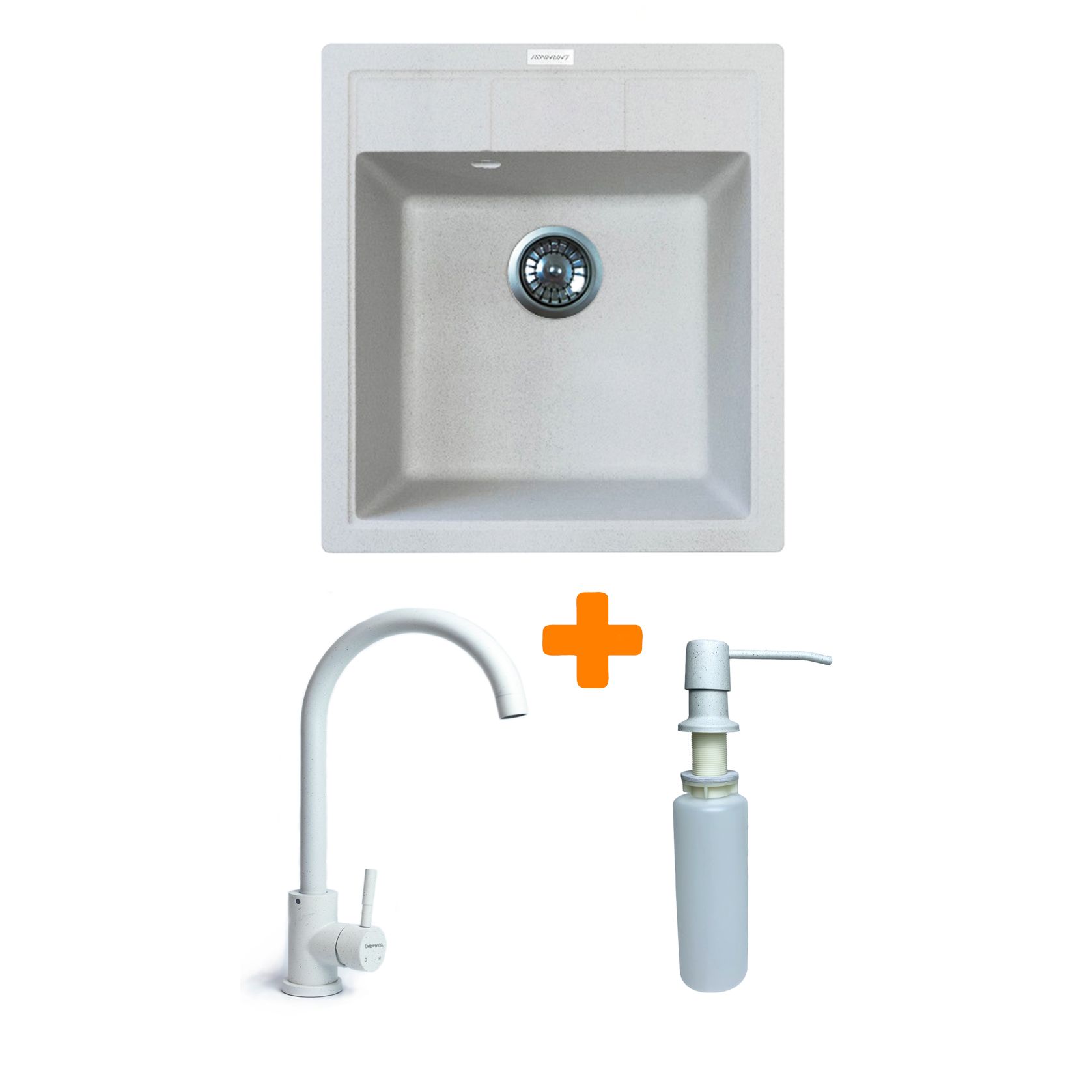 Набір Adamant Brick поєднує мийку зі штучного каменю, зручний кухонний змішувач та вбудований дозатор мийного засобу. Глибока квадратна чаша створює комфорт під час щоденного використання та легко очищується завдяки непористій структурі. Змішувач із нержавіючої сталі має плавний хід та можливість обертання виливу. Дозатор встановлюється у мийку або стільницю та дозволяє подавати мийний засіб одним натисканням. Це готовий комплект для сучасної та функціональної кухні.