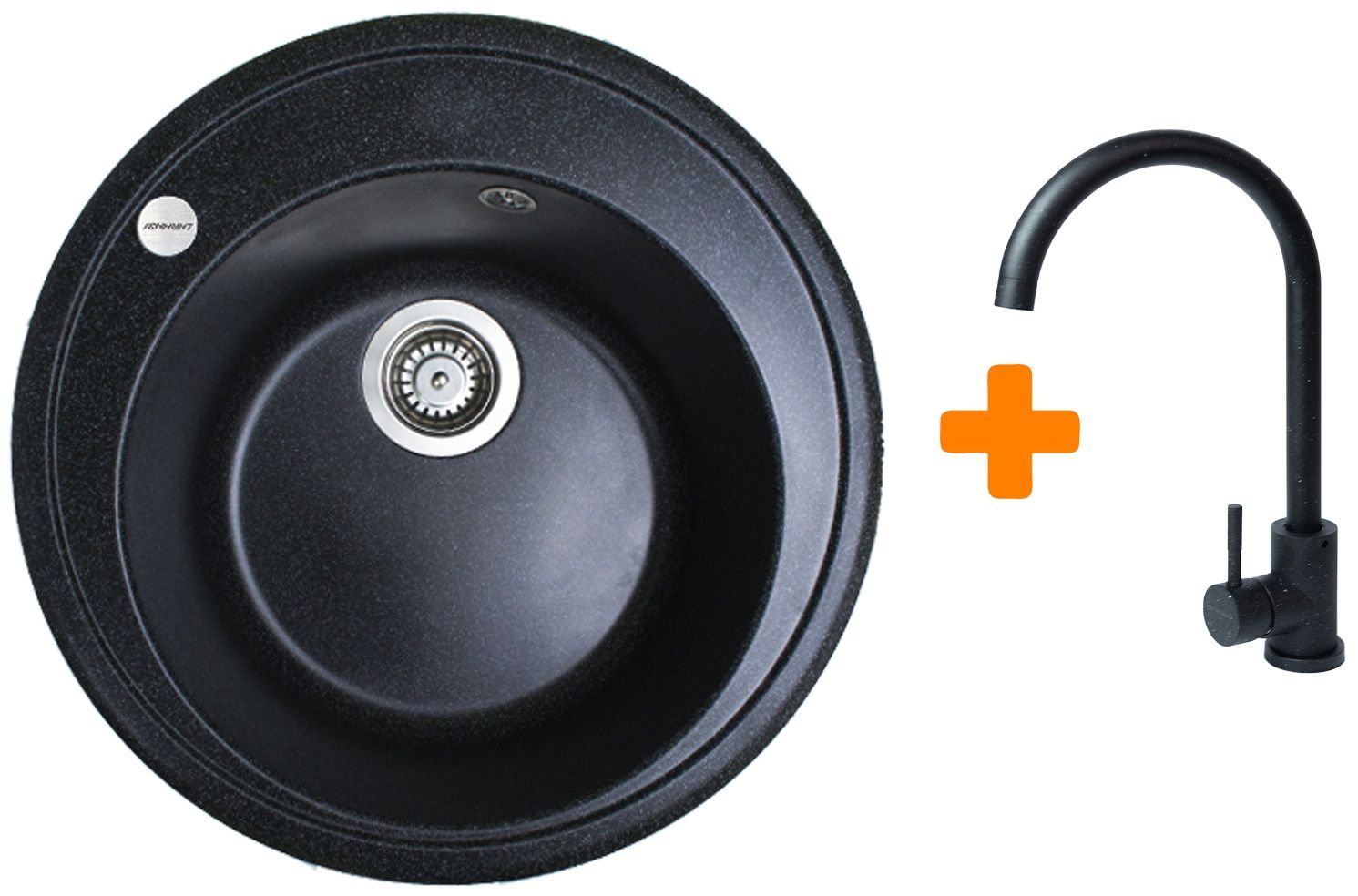 Набір кухонна Adamant Sun, штучний камінь, кругла, без крила, 510x200мм, чаша - 1, врізна, чорний + змішувач